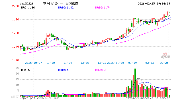 2月25日,电网设备ETF(159326)开盘跌0.21%,报1.906元。电网设备ETF(159326)重仓股方面,特变电工开盘涨0.07%,思源电气跌0.48%,国电南瑞涨0.07%,中天科技涨1.44%,亨通光电涨0.00%,宏发股份跌0.10%,正泰电器跌0.53%,金盘科技涨0.12%,东方电缆涨0.00%,中国西电涨0.07%。