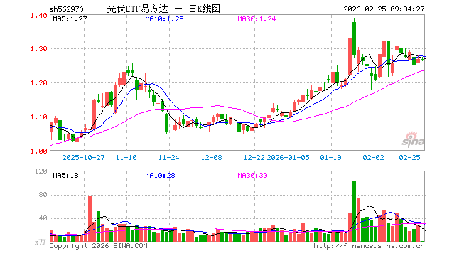 2月25日,光伏ETF易方达(562970)开盘跌0.08%,报1.267元。光伏ETF易方达(562970)重仓股方面,特变电工开盘涨0.07%,隆基绿能涨0.22%,阳光电源跌0.67%,TCL科技跌0.42%,迈为股份跌0.32%,德业股份涨0.29%,正泰电器跌0.53%,TCL中环涨0.10%,捷佳伟创跌0.41%。