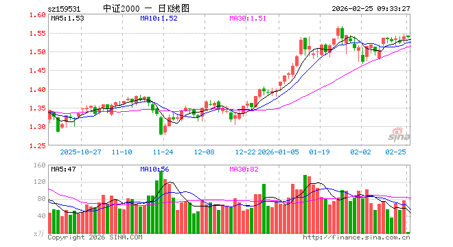 中证2000ETF(159531)业绩比较基准为中证2000指数收益率,管理人为南方基金管理股份有限公司,基金经理为李佳亮,成立(2023-09-07)以来回报为53.99%,近一个月回报为-1.19%。