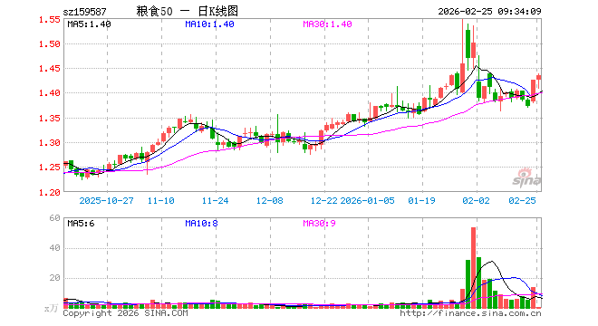2月25日,粮食ETF广发(159587)开盘涨0.00%,报1.425元。粮食ETF广发(159587)重仓股方面,大北农开盘涨0.00%,隆平高科涨0.10%,北大荒跌0.51%,荃银高科涨0.00%,神农种业涨0.26%,藏格矿业涨0.45%,亚盛集团涨0.28%,农发种业涨0.13%,盐湖股份涨0.73%,云天化涨2.13%。