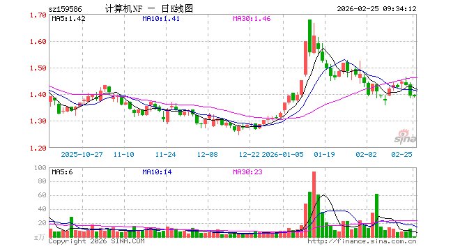 2月25日,计算机ETF南方(159586)开盘涨0.07%,报1.396元。计算机ETF南方(159586)重仓股方面,科大讯飞开盘跌0.80%,金山办公涨0.40%,同花顺涨0.05%,指南针涨0.37%,恒生电子涨0.13%,拓维信息涨1.55%,润和软件涨0.12%,三六零跌0.47%,软通动力涨0.36%。