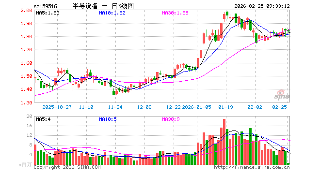 2月25日,半导体设备ETF(159516)开盘涨0.05%,报1.844元。半导体设备ETF(159516)重仓股方面,北方华创开盘涨0.23%,中微公司跌0.20%,拓荆科技涨0.82%,长川科技涨2.22%,沪硅产业跌0.05%,华海清科涨0.20%,中科飞测涨0.20%,南大光电跌1.38%,安集科技跌0.17%,芯源微涨0.83%。