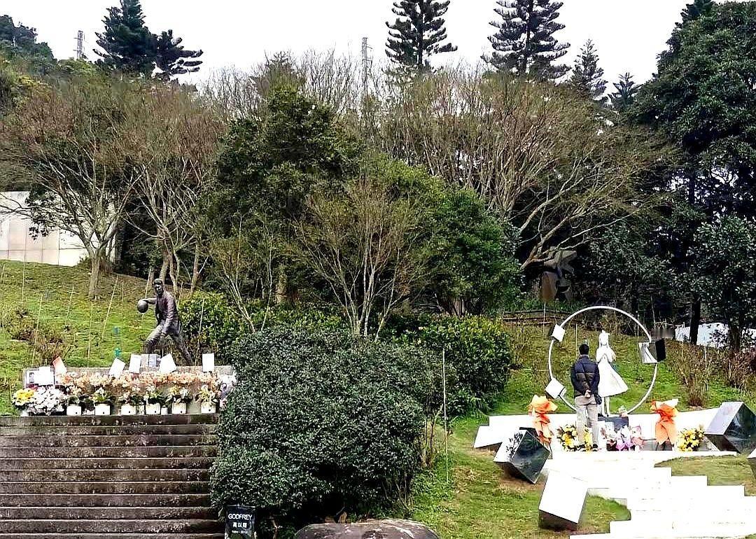 金宝山名人墓园,直线距离才20米,境遇却天差地别。 一边是大S(徐熙媛)逝世一周年的雕像揭幕仪式。丈夫具俊晔停工一年,亲自设计监造,把两人的密码“9”和“S”融入其中。仪式上他穿着27年前她送的大衣,默默站在一旁。 S妈抱着雕像痛哭,小S哽咽感谢姐夫的真爱。雕像前,鲜花堆积如山,热闹得仿佛一场重生。 另一边,高以翔的墓碑前,花束稀少,颜色枯败。 别再说什么世态炎凉了。一个人走后还能被热烈地记着,往往不是因为他多伟大,而是因为爱他的人,还在拼命为他“营业”。 爱不是说出来的,是做出来的,生前如此,死后亦然。