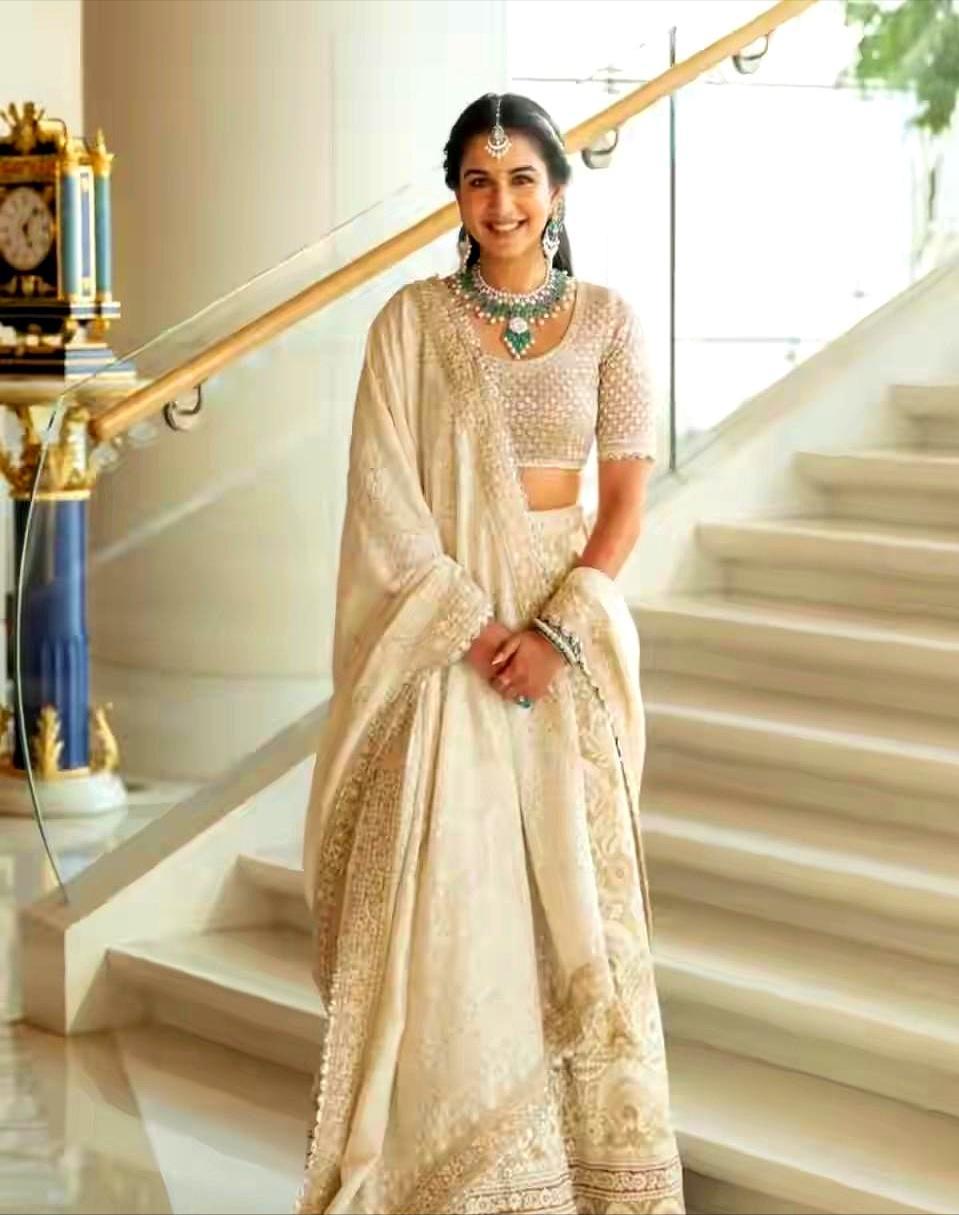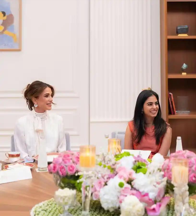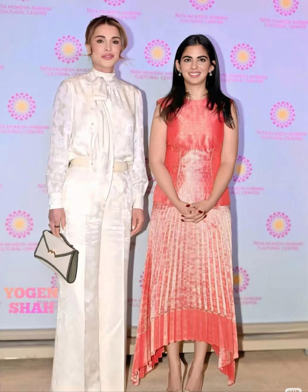 约旦王后拉尼娅到访印度[奸笑] 不仅在新德里演讲,还与印度首富会面, 首富夫人妮塔携家中女眷热情接待了拉尼娅, 妮塔和女儿穿着白色纱丽和裙装,优雅大方, 但两位儿媳似乎略失得体,尤其是小儿媳, 明显去年在婚礼上的传统服饰更适合她[奸笑]