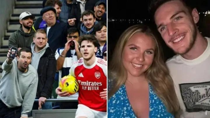 太过分!一热刺球迷嘲讽赖斯妻子外貌,在比赛时展示照片挑衅赖斯