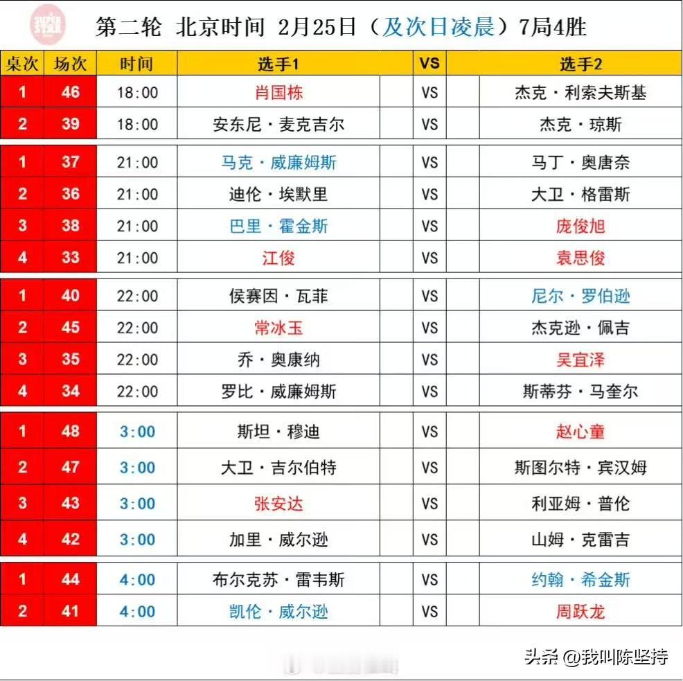 威尔士公开赛首轮全部结束,中国选手有赵心童、吴宜泽、常冰玉等9人进入32强,雷佩凡、范争一、斯佳辉等被淘汰。 冲击英国本土系列赛奖金版第一的周跃龙、常冰玉还在,由于艾伦积分很高,周跃龙和常冰玉需要夺冠,利索夫斯基需要进入决赛才能超越艾伦,艾伦获得额外15万英镑的可能性还是很大。 目前看,中国斯诺克的主力就是赵吴常加上肖张组合,他们目前都还在。 今天比赛更加精彩 晚上6点,肖国栋对阵利索夫斯基,果冻防守反击应该还是有机会。 9点,庞俊旭对阵霍金斯,袁思俊对阵江俊,庞俊旭和江俊都是比较慢的选手,要有心理准备。 10点,常冰玉对阵佩吉,吴宜泽对阵奥康纳,这是重头戏。 凌晨3点,赵心童对阵穆迪,张安达对阵普伦,普伦进步很大,张安达不好打。 凌晨4点,周跃龙对阵凯伦威尔逊。 会有几个中国球员进入16强?