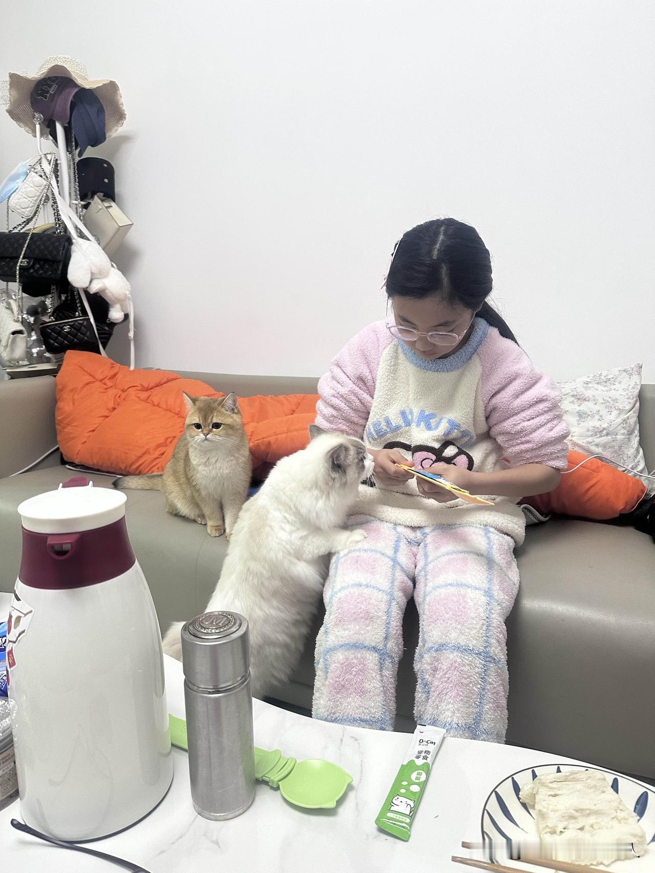 分享一下你家养的是什么猫?一只金渐层,一只布偶。觉得金渐层好可爱,互动性强,干净利落。布偶猫脱毛厉害,互动性不强,不好。
