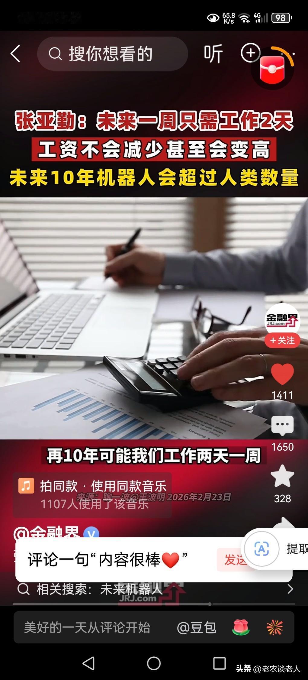 专家:未来一周只需工作2天,人类新的幸福生活即将到来! 现在人们的法定工作状况是,每周从星期一到星期五为工作时间,周六到周日为休息时间,每周工作5天休息2天的工作制度。 而有些特殊行业,特别是农民工阶层,每周需要上7天班,甚至每一个月只有一天两天休息时间,或者没有休息时间,工作十分辛苦、艰难。 现在好了,有专家预测到2035年,即十年以后,人类的工作状况将为每周只能工作两天,休息5天时间,并且工资不会减少,反而还会提高。这就是即将到来的数字化转型升级时代,给人类所带来的新的幸福生活,是科学的发展,社会的进步的重要标志。 据媒体2月25日报道,清华大学智能产业研究院院长预测未来10年可能实现每周工作两个工作日,并且工资不会减少,甚至反而更高。 原因是,人类到2035年机器人的数量将会达到人类总数的70~80亿。这一预测引发了人们对未来工作模式和就业结构的高度关注,并且引起人们的高度好奇心。 机器人代替工作的同时新增岗位集中在人机协同领域有:技术辅助类: 如Ai训练师、机器人运维工程师缺口会超500万人;情感服务类:心理咨询、养老护理需求上涨到了63%;跨界融合类:如教师转型个性化辅导师、设计师专注创新优化。还有人机协同开发,人机安全监护,伦理治理等新岗位。 因此,人们没有必要担心和害怕,机器人时代的到来,会挤压人们的工作岗位,抢占人们的饭碗。这种认识是一种错误的,是不懂客观事物发展规律的。 新的生产力的出现,人们的工作岗位的失去,必然会有新的工作岗位的诞生和呈现,一个领域的淘汰和消失,必然会有新的领域的涌现和出现。这些出现的新的工作岗位都是需要人去工作的。 归根结底,这是生产力的发展所带来的福利,这是科学的发展,社会的进步,给人类社会做给予的红利。从历史发展的角度来看,每一次生产力的发展不会降低人们的幸福生活,反而有利于人们的幸福生活。 以上是本人观点,如有不妥,请大家在留言区去,留下你宝贵的意见,并积极参与评论。特邀请大家关注。 威兰达AIR权益价13.78万专家:未来一周只需工作2天 双休规定 五天半工作制