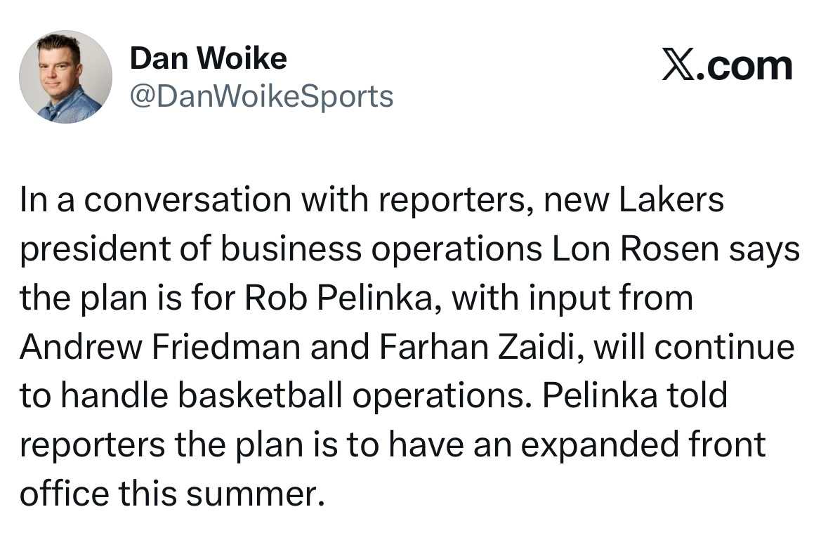 目前由佩林卡继续负责篮球运营事务,安德鲁-弗里德曼和法尔汉-扎伊迪提供意见支持。