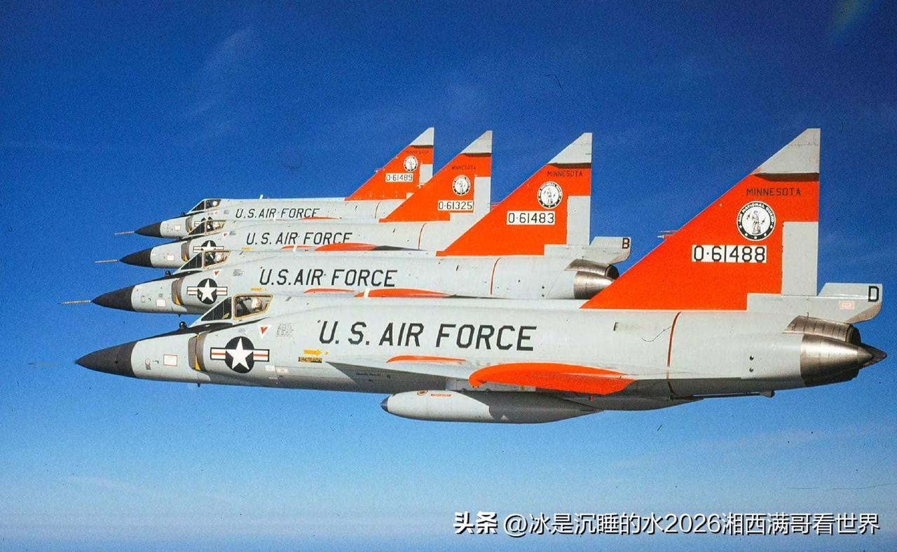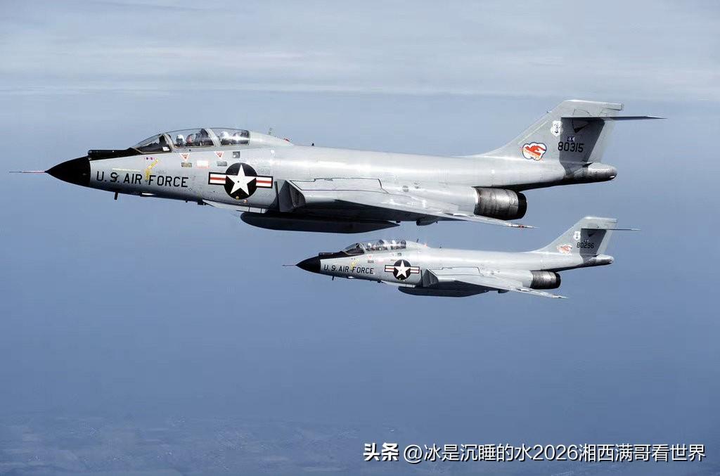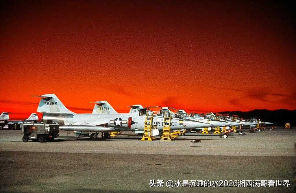 分享一组美国空军上世纪50~60年代装备的各型喷气式战机,代表了当时最先进的航空科技水平。 第一代F-100“超级佩刀”,是世界上第一种最大平飞速度超过音速的喷气式战斗机,比苏联空军的米格-19“农夫”要早。 F-101“巫毒”,凭借超音速性能搞侦查,号称西方国家的“战略之眼”,被中国空军击落过; F-102“三角标枪”超音速截击机,美国本土国民警卫队的主力; F-104“星”,世界上第一种最大平飞速度超过2马赫的战斗机,机翼薄得可以切牛排,因为飞行事故率比较高,臭名昭著,被称为“寡妇制造者”,也被中国空军击落过; F-4“鬼怪II”,由海军型发展到空军型,航电设备先进,飞行速度快,载弹量大,中东战争表现优异,大量装备美国海空军并且出口给盟国,最大生产数量4000余架,是西方国家最成功的第二代喷气式超音速战斗机。同样入侵中国领空,被中国空军击落过; F-5A“自由战士”,美国用于援助盟国的廉价轻型战斗机,大量出口盟国,中国台湾省国民党空军引进生产线装备过F-5A/E/F型,80年代初中期台湾国民党飞行员驾驶过2架F-5F“虎”高级战斗/教练机飞到中国大陆起义投诚; F-111“土豚”战斗轰炸机,世界上第一种超音速可变后掠翼战斗轰炸机,性能先进,发展型有FB-111远程轰炸机、EF-111“渡鸦”电子干扰机,参加过对利比亚的“黄金大峡谷”轰炸、海湾战争,表现一般; F-105“雷公”,当年世界上起飞重量、尺寸最大的单发喷气式超音速战斗机,作为对地攻击主力参加过越战,损失惨重; F-8“十字军战士”,美国海军最后一款机炮作战的超音速喷气式舰载战斗机,与F-4“鬼怪”、A-4“天鹰”、A-5“民团战士”这些舰载机成为美国海军50~60年代的舰载机主力,参加过越战,多次击落越南战机,号称“米格杀手”。