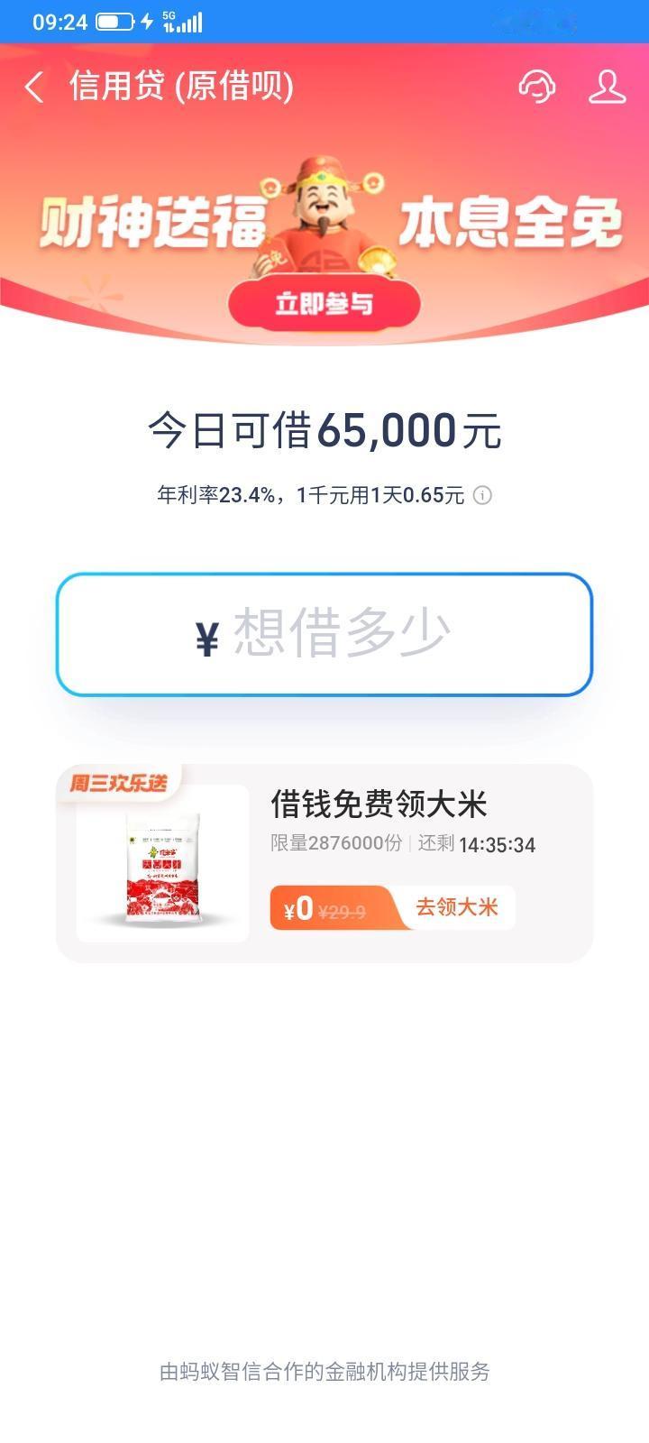 借呗又出新招,诱惑我贷款,送米,今天贷款送5斤大米,另外还送了一张首期5折的优惠