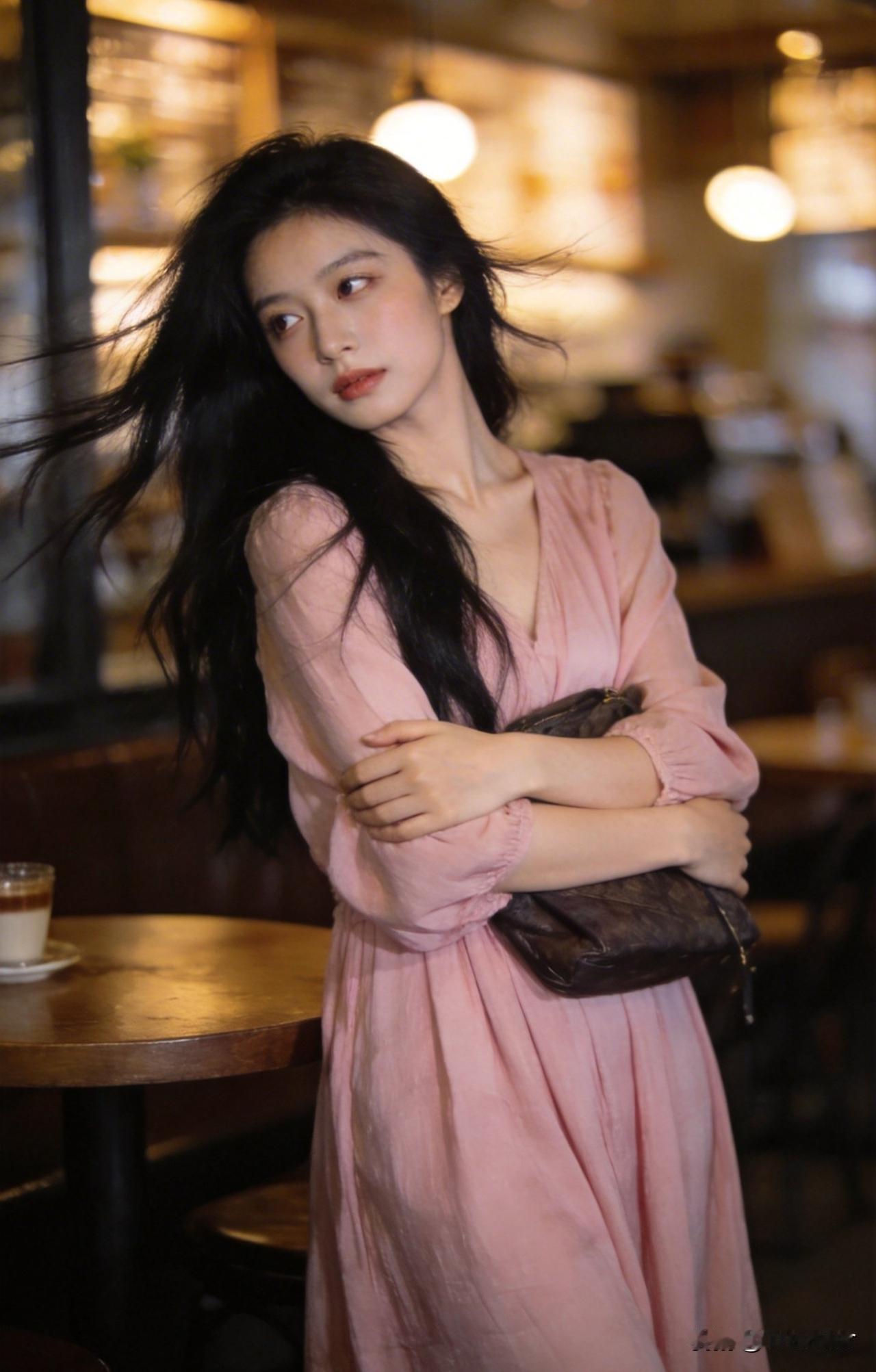 咖啡馆里的温柔时光,粉裙飘飘,静享美好。
