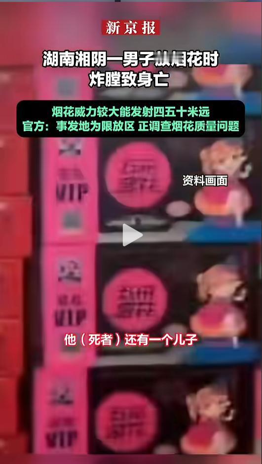 “悲剧还是发生了!”近日,湖南潇湘,一男子在限放区私自燃放烟花时突发意外,点燃的烟花未能正常升空,发生炸膛事故。男子躲闪不及被炸中胸部,当场身亡!当地政府表示此事件是意外事故,正在进一步调查。网友:得好好查查烟花生产厂家! 过年期间燃放烟花爆竹是咱们中华民族的传统习俗了,但烟花属于危险品,每年引发的事故不计其数,燃放时一定要注意安全。 据媒体2月24日报道,该男子今年33岁,事发地处于限放区。男子自己购买了烟花爆竹,在家中燃放,没想到发生了意外。 男子点燃引线后,没有马上后撤,这时候,点燃的烟花没有正常升空,反而直接炸膛了。男子没有预防,躲避不及,被当场炸中胸部,不幸遇难! 知情人士介绍,男子燃放的烟花威力很大,能发射四五十米远,谁也没想到会发生这样的事。当地相关部门已经介入了,正在调查烟花是否存在质量问题。 男子还有一个儿子,目前政府已经介入了,正在给做调解。 网友看后表示,太痛心了,孩子就这样失去了父亲。一定得好好查查,万一存在质量问题,那风险可就太大了! 每年都会看到因燃放烟花导致的意外事故,大家一定要引以为戒。一定要在正规渠道买正规厂家生产的烟花!一定要挑选空旷安全的区域燃放!点燃后一定要及时撤离!不要靠近正在燃放的烟花! 信息来源:《湖南湘阴一男子放烟花时炸膛致身亡 镇政府:事发地为限放区 为意外事件》新京报