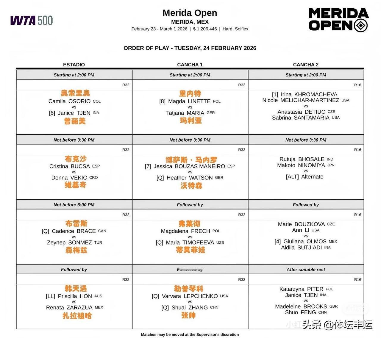 37岁的劳模张帅太猛了!在2026年职业网球赛季第七周的WTA500梅里达站,她原本能以“替补”等正赛席位,却偏要从资格赛打起,这对刚经历单打五连败、排名第85位左右的老将来说,太有勇气了。 资格赛首轮,她和波兰选手皮特尔的对决,堪称跨越13年的“复仇之战”,当年在家乡输球成了球迷意难平,这次她很快进入状态。 如今闯入正赛,首轮将对阵39岁美国的勒普琴科,张帅交手记录4 - 2占优。期待张帅继续创造奇迹! 张帅排名 张帅澳网 张帅法网