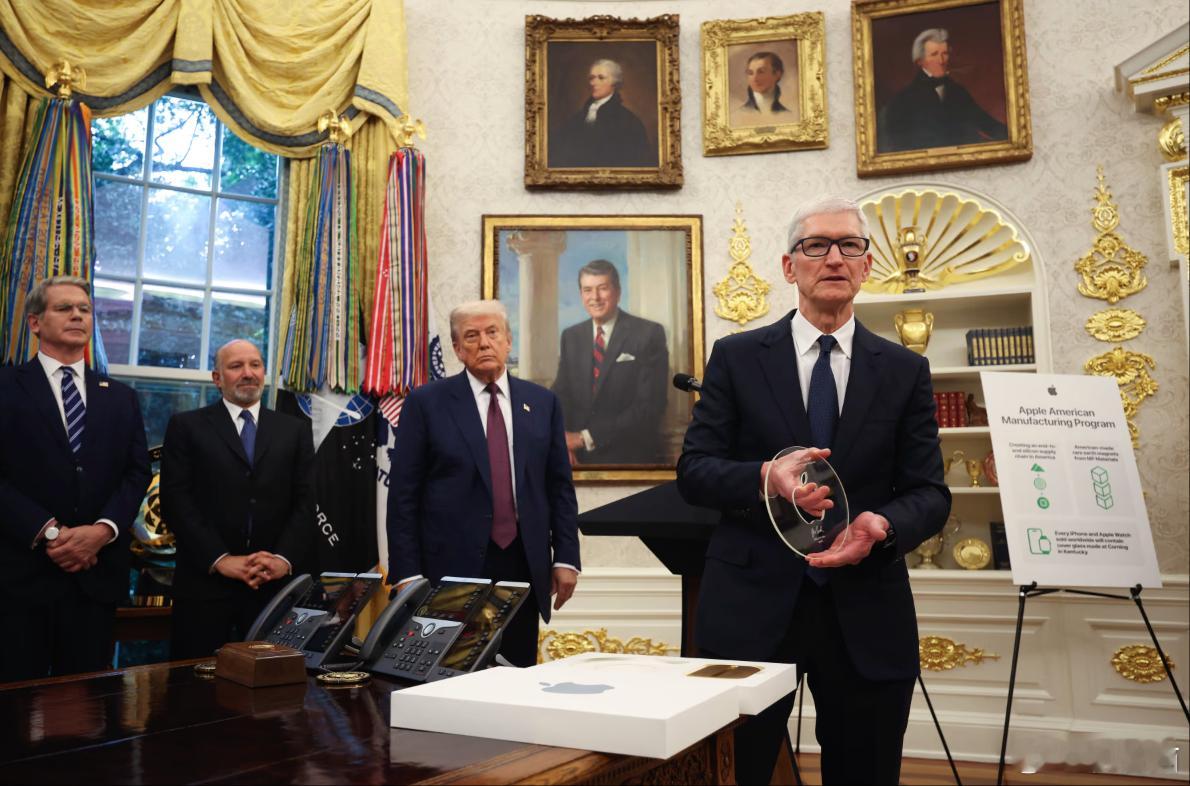 突然想起去年8月库克给川普送了一个24K黄金底座的康宁玻璃后来金价大涨现在这个奖杯应该比之前值钱了不少啊