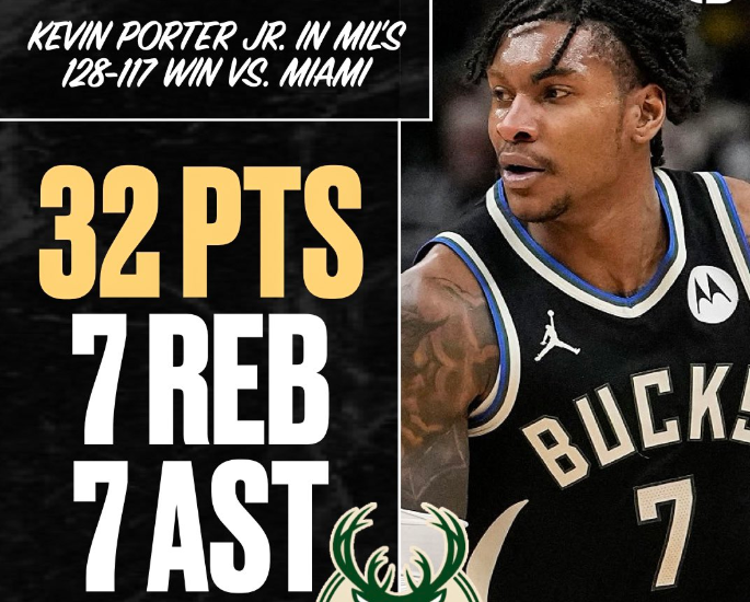 本场比赛,雄鹿球员凯文-波特出战36分钟,20投11中,其中三分球4投2中,罚球8投8中,得到32分7篮板7助攻2抢断1封盖。