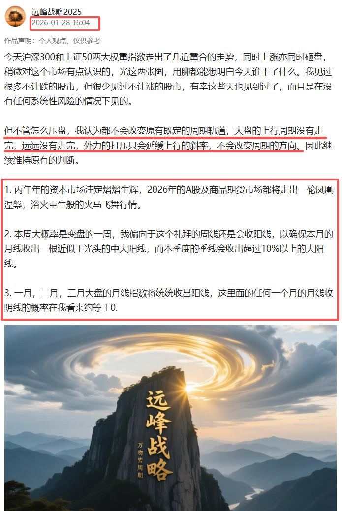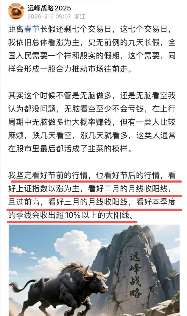 还记得过去这些文章么,对于每一天走势的判断不可能每次都对,但对于大势的判断,一般来说我很少会看走眼。一月初的时候我说过,2026年一月,二月,三月的月线统统都会收出阳线,这里面的任何一个月的月线收阴线的概率在我看来约等于0。即便在二月中旬出现连续下跌的时候我依旧是这个观点,当初不少人说这次要破功了,从今天的情况来看,二月的月线收阳线已成定局了。 三月份的月线呢?我依旧还是过去的观点,三月的月线会收阳线,收阴线的概率依旧约等于0,为什么要约等于呢?毕竟还是要谦虚一点,凡是不能说地太绝对,是不?
