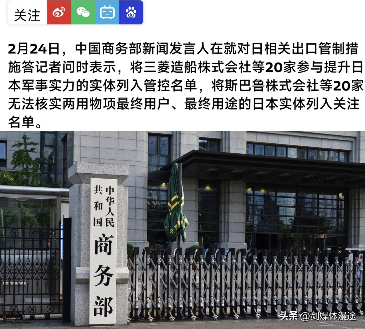 2 月 24 日中国商务部出台对日本 40 家企业涉及两用物项出口管理措施之后,