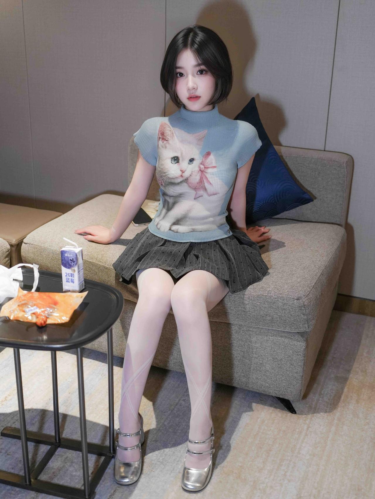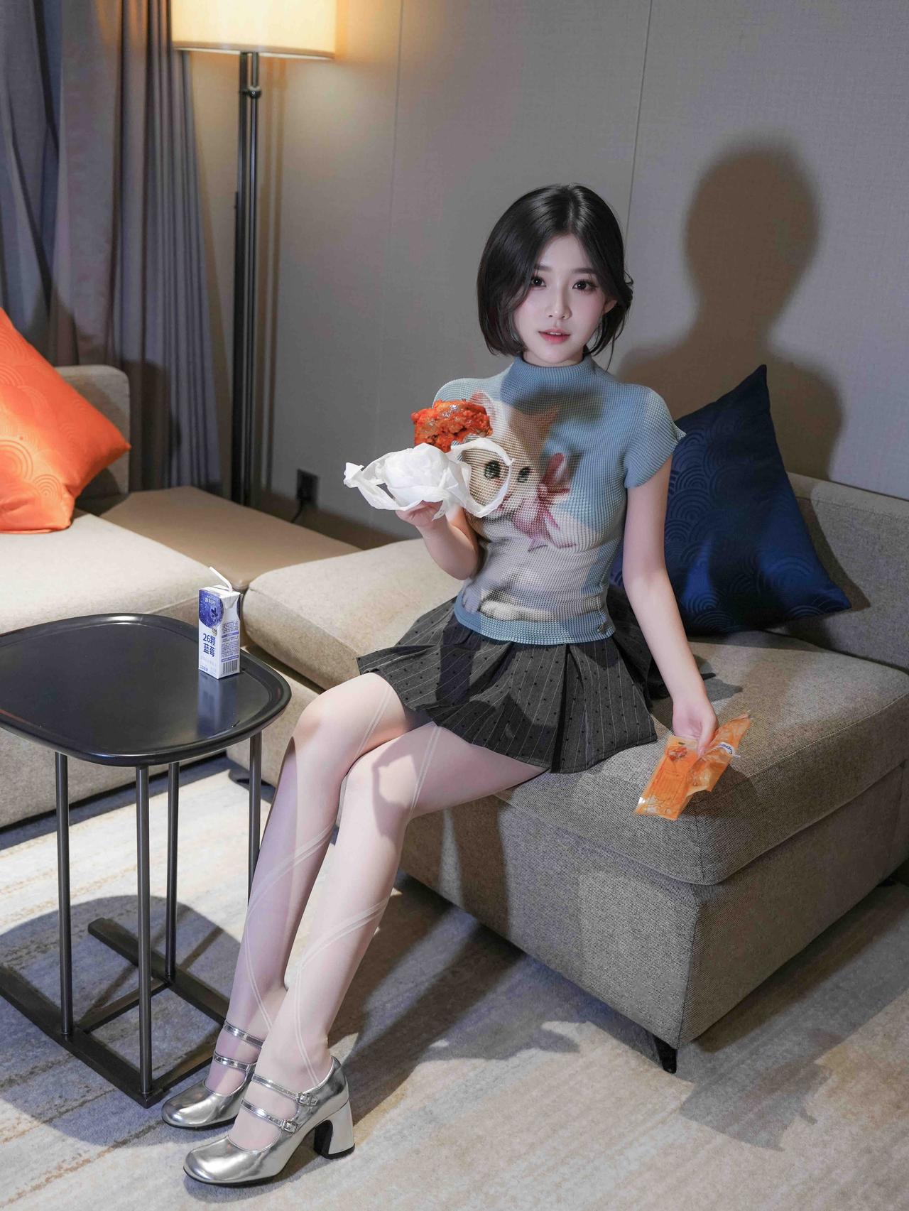 女人如何穿出含蓄的性感?短裙是性感的标配,加上吃东西的憨态能更好的含蓄表现[呲牙