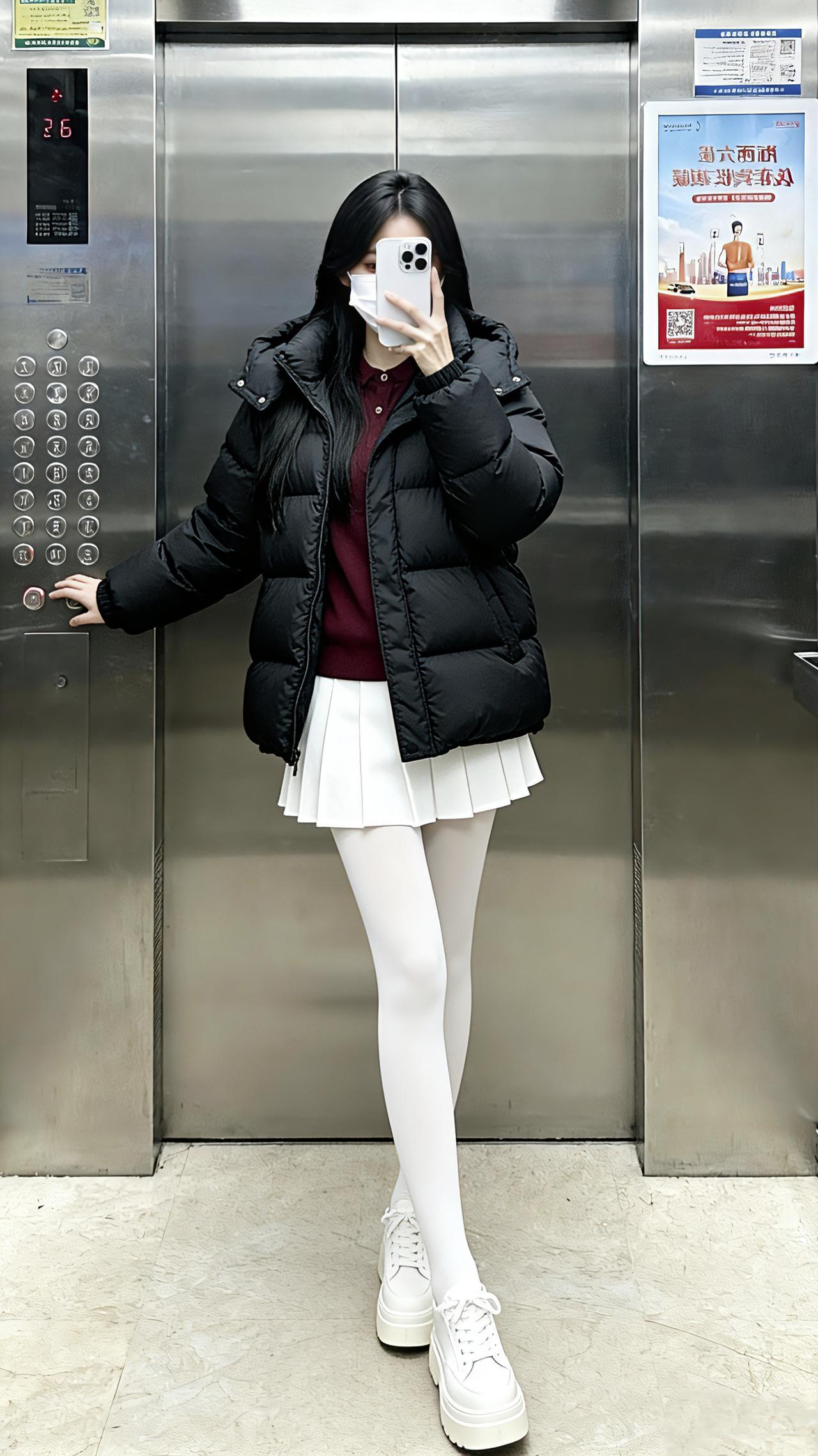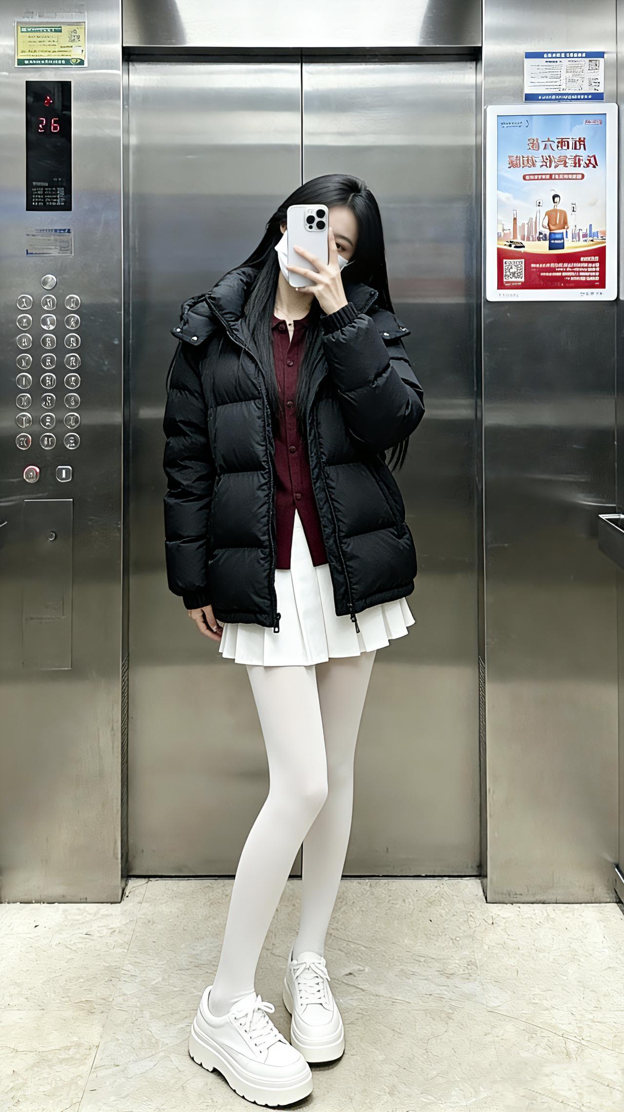 这种甜酷风你们爱了吗?黑羽绒服裹着暖乎乎的安全感,白百褶裙一摆又甜得清爽~穿搭 保暖穿搭 丝袜穿搭 甜酷女孩