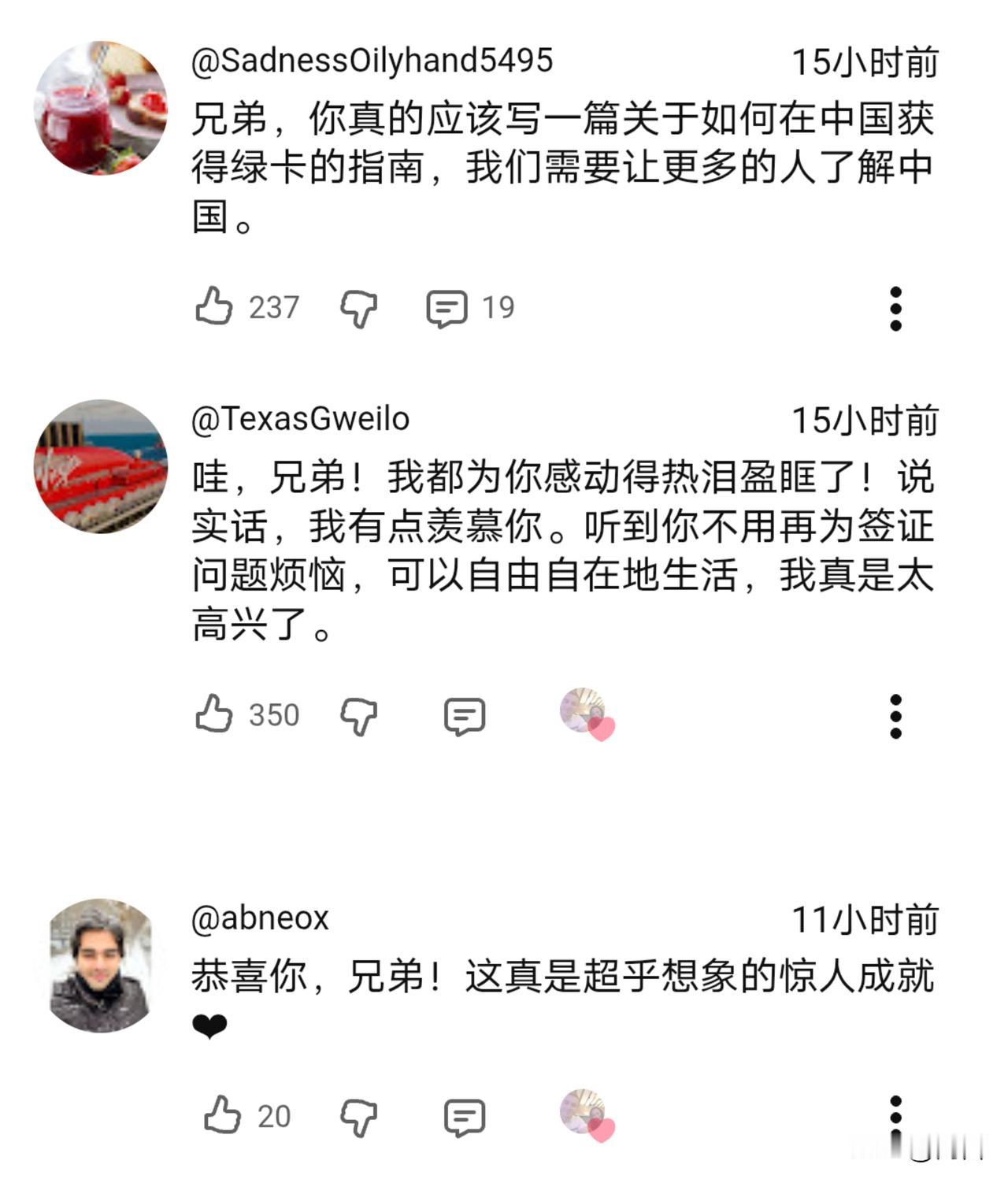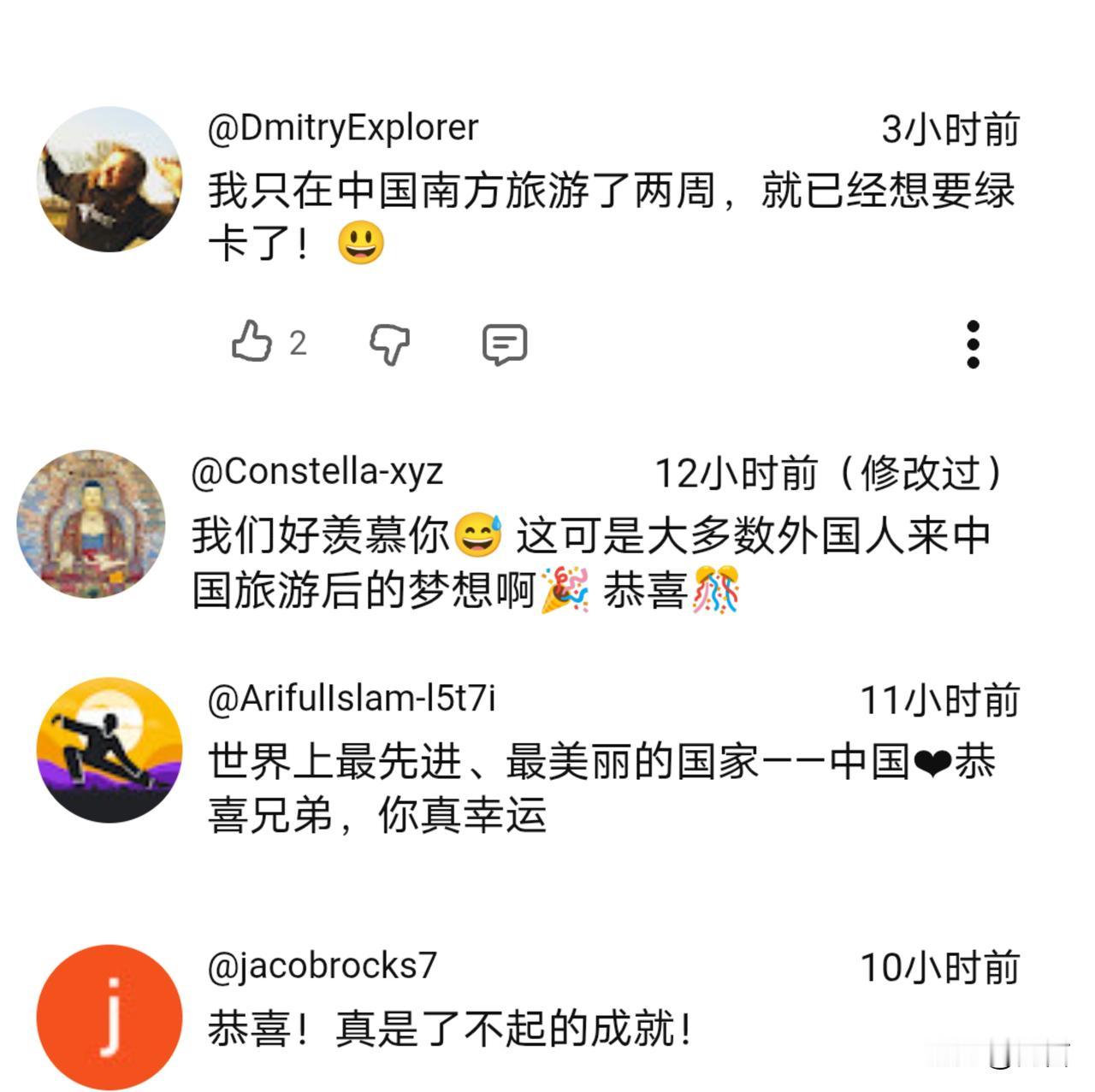 “我拿到了世界上最难申请的绿卡”老外:羡慕!我们也想拥有一张… 2月24日,一名生活在中国的英国人晒出了自己的中国绿卡。他在视频中表示,在中国生活了14年,我终于拿到了中国绿卡。随后,他又介绍了申请过程及申请中国绿卡的条件等。 随着我国综合实力的不断增强,吸引力自然水涨船高,来华旅行、工作及生活的外国人在逐年递增。就如一名丹麦网友所言,要是自己再年轻10岁会搬到中国,并申请绿卡…