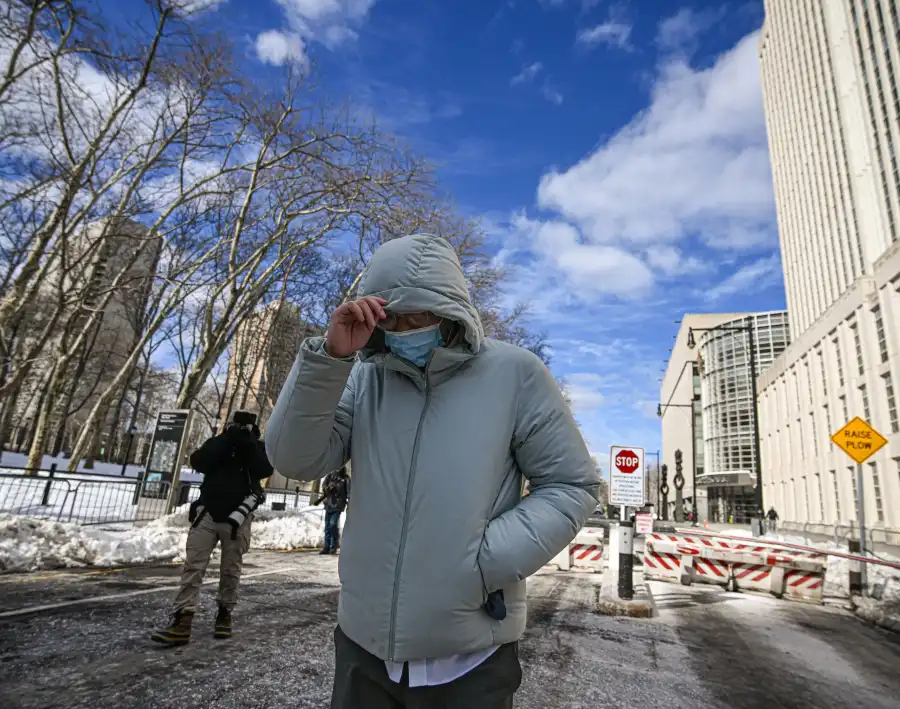 ⁴ 他利用上班间歇,还替网红回复粉丝留言。他专门有一个手机干这些事。还给网红买冬衣。纽约最近下大雪。图1:他刚出法院大门,地上明显积雪。