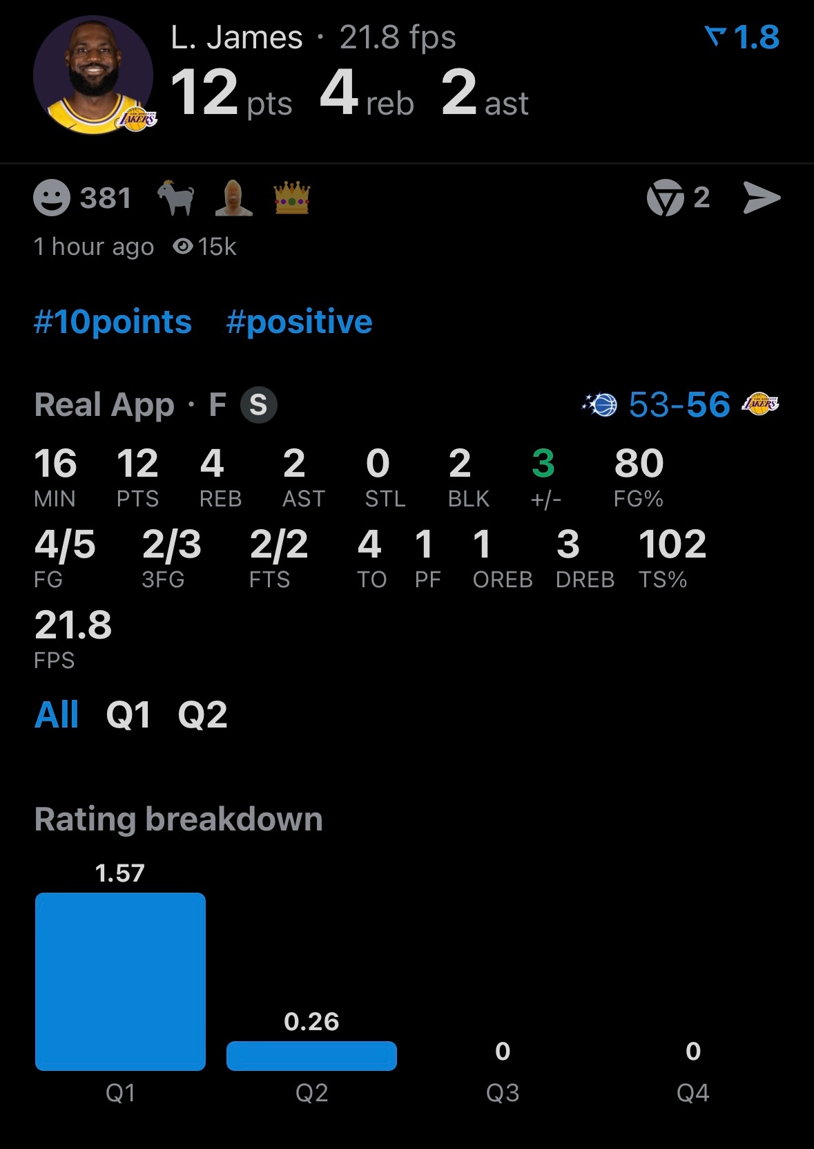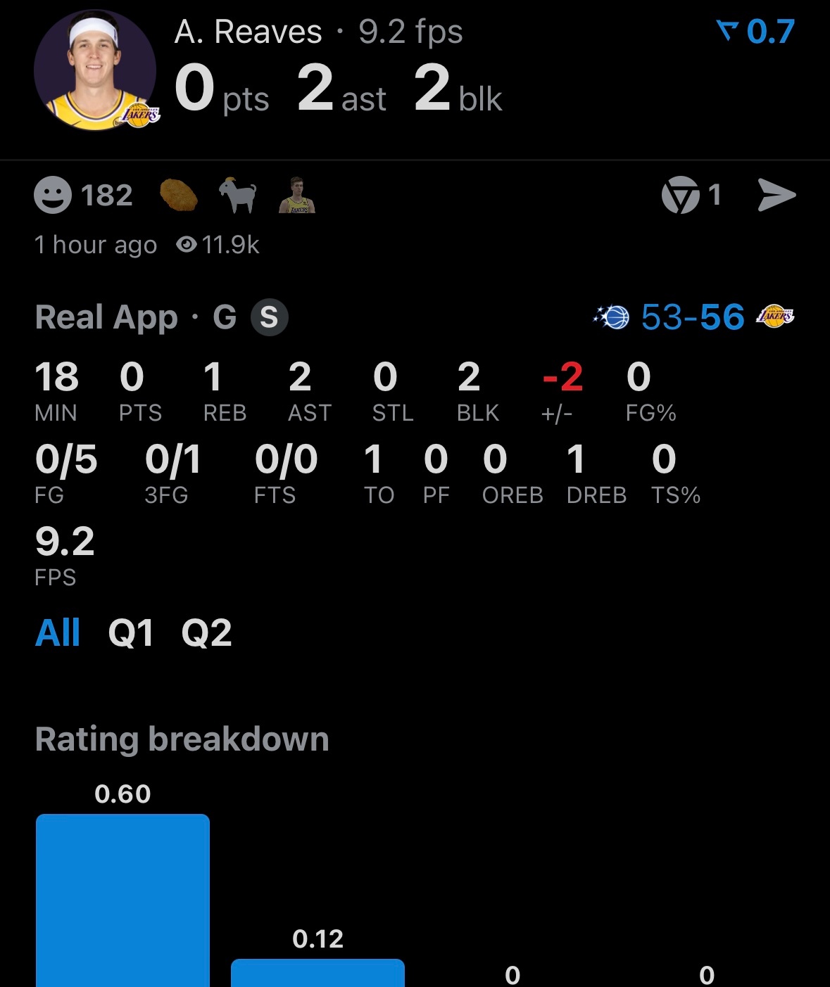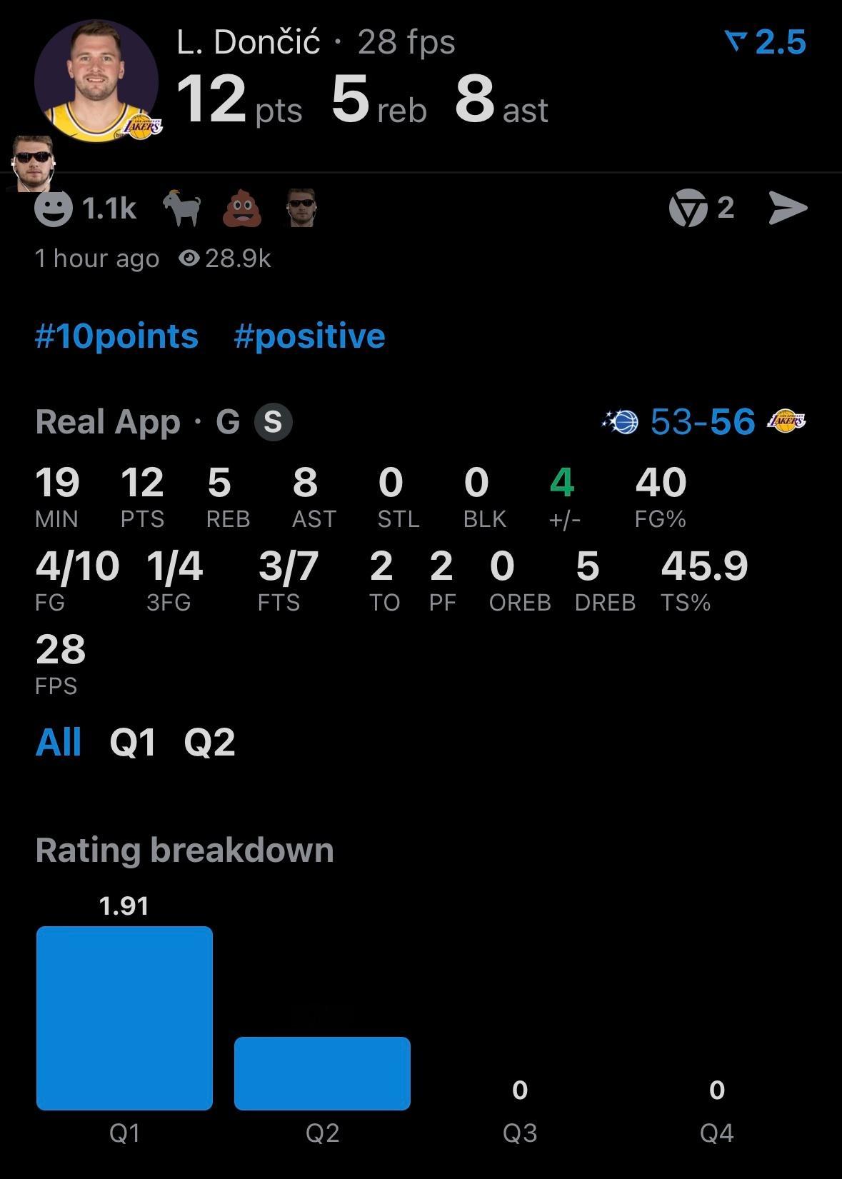 半场比赛,詹姆斯12分4板2助攻2盖帽、东契奇12分5板8助攻,里夫斯0分1板2