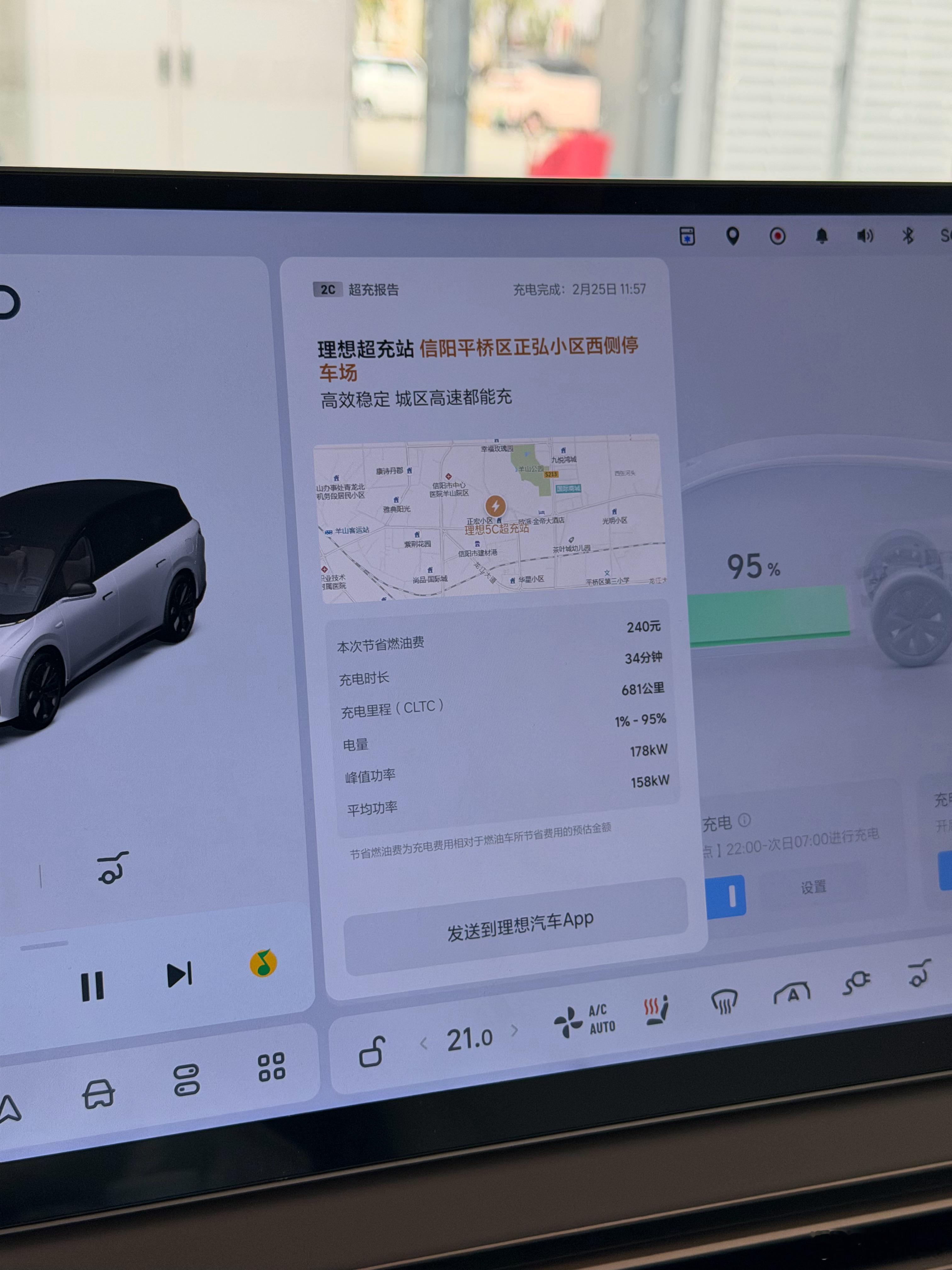 理想i8 在理想2C充电桩上也挺快的,1%-95%耗时34分钟,虽说峰值功率只有178KW,但好在平均功率能达到158KW,85%以上的电量充电功率仍然有150KW+。明天正式返程江苏,错峰回家上班