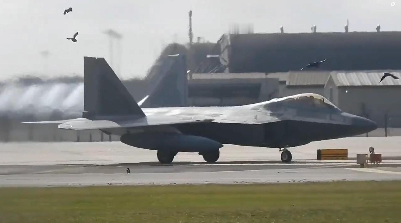 随着12架F-22隐形战斗机,从英国拉肯希斯皇家空军基地起飞,在7架空中加油机支