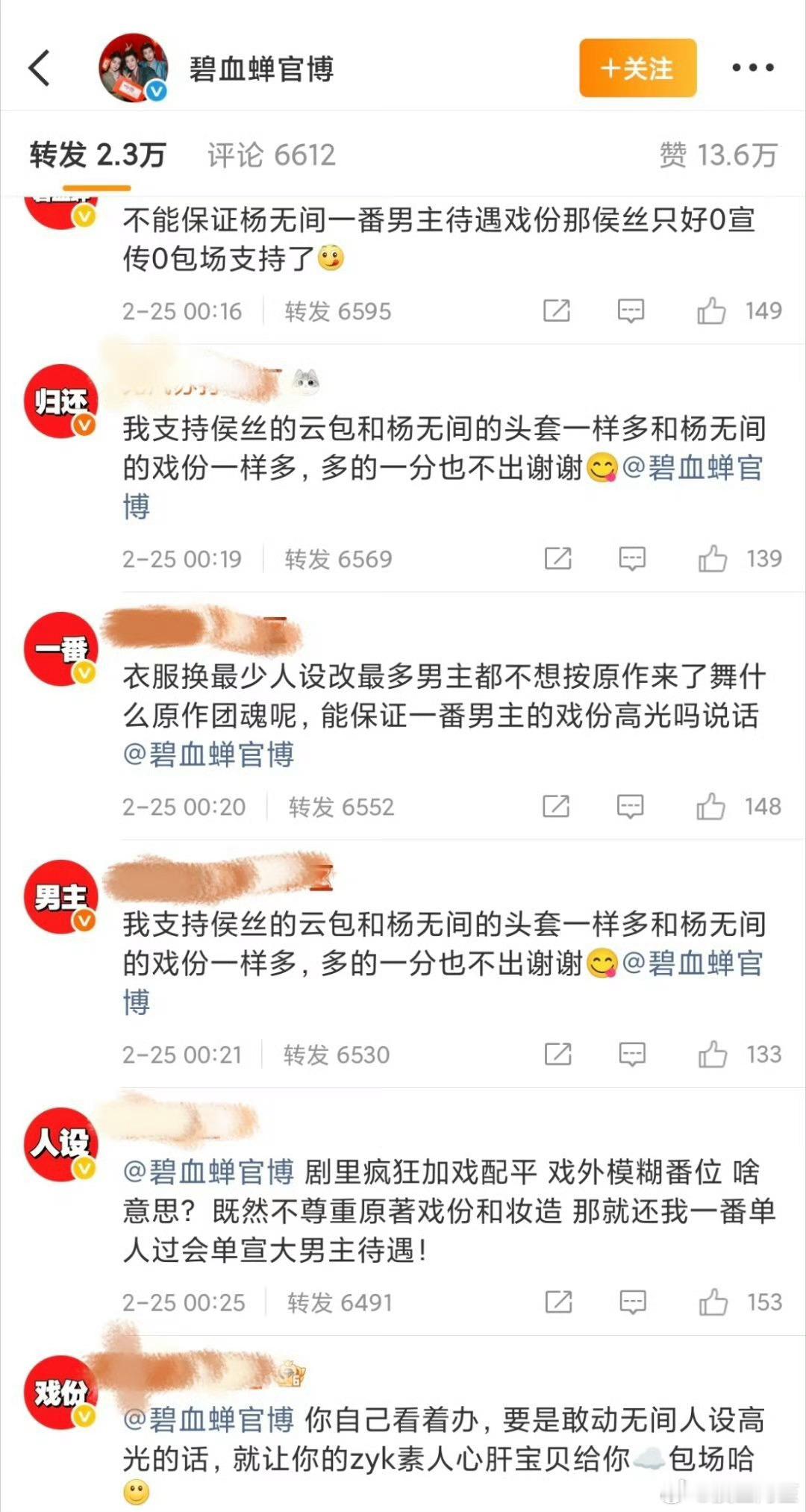 《碧血蝉》给徐振轩的庆生博,转发评论都是侯明昊粉丝维权。
