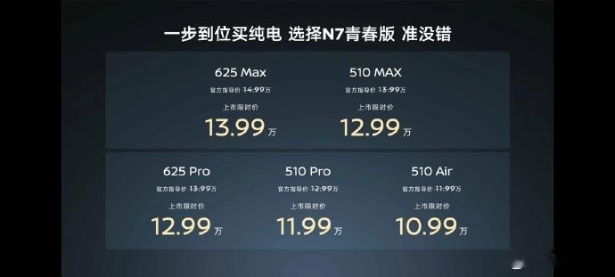 日产N6的价格探到10万以下,N7的价格则是到了10.99万。