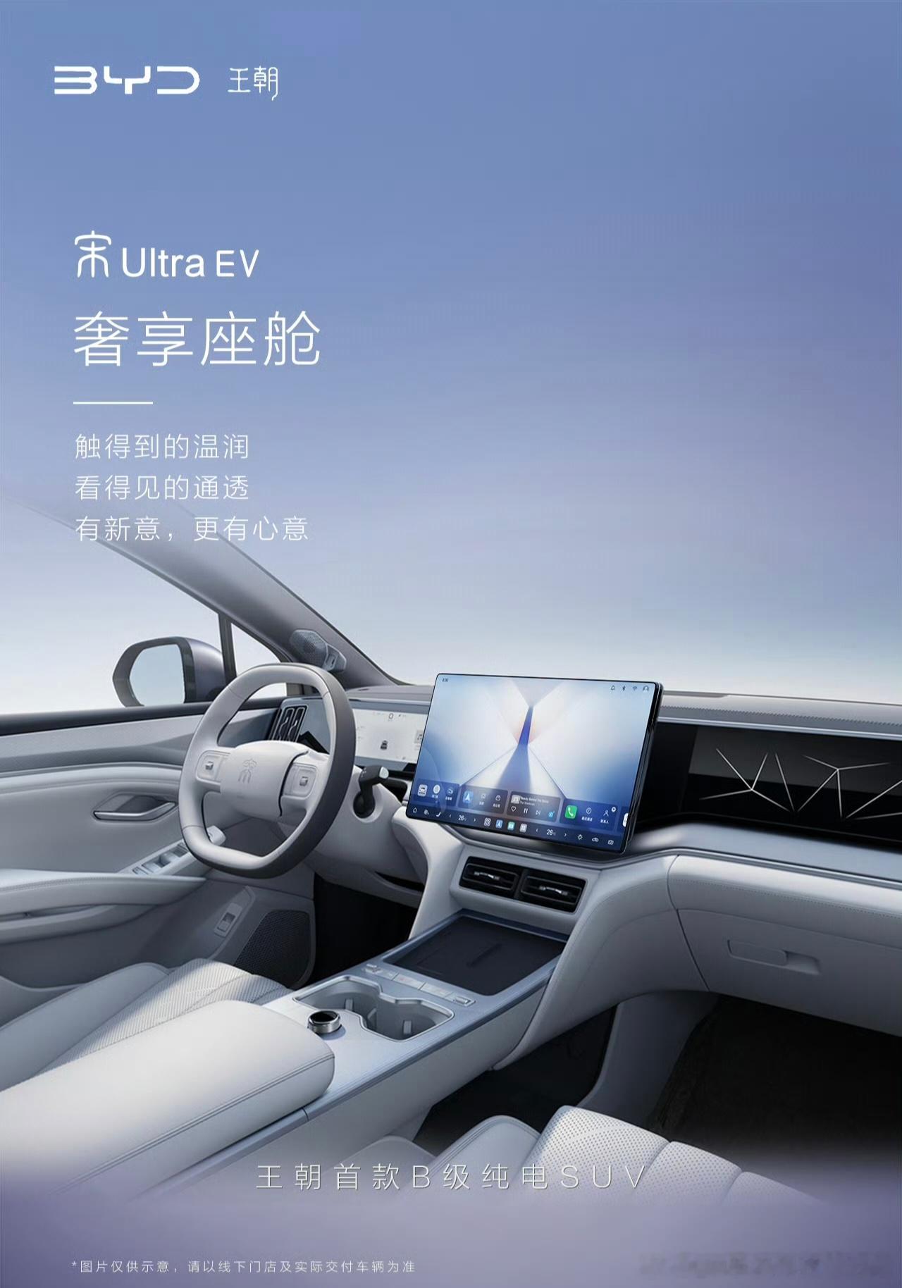 比亚迪宋Ultra EV内饰官宣,新的方向盘设计有点新势力的风格了,中控屏幕边框