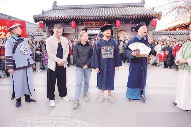 正月初五的涉县赤水湾古镇,锣鼓喧天、人声鼎沸。下午两点,身着官服、头戴乌纱帽的刘晓玉,正站在县衙门口的广场上,高声一喊“招聘令”,引来游客围观。
