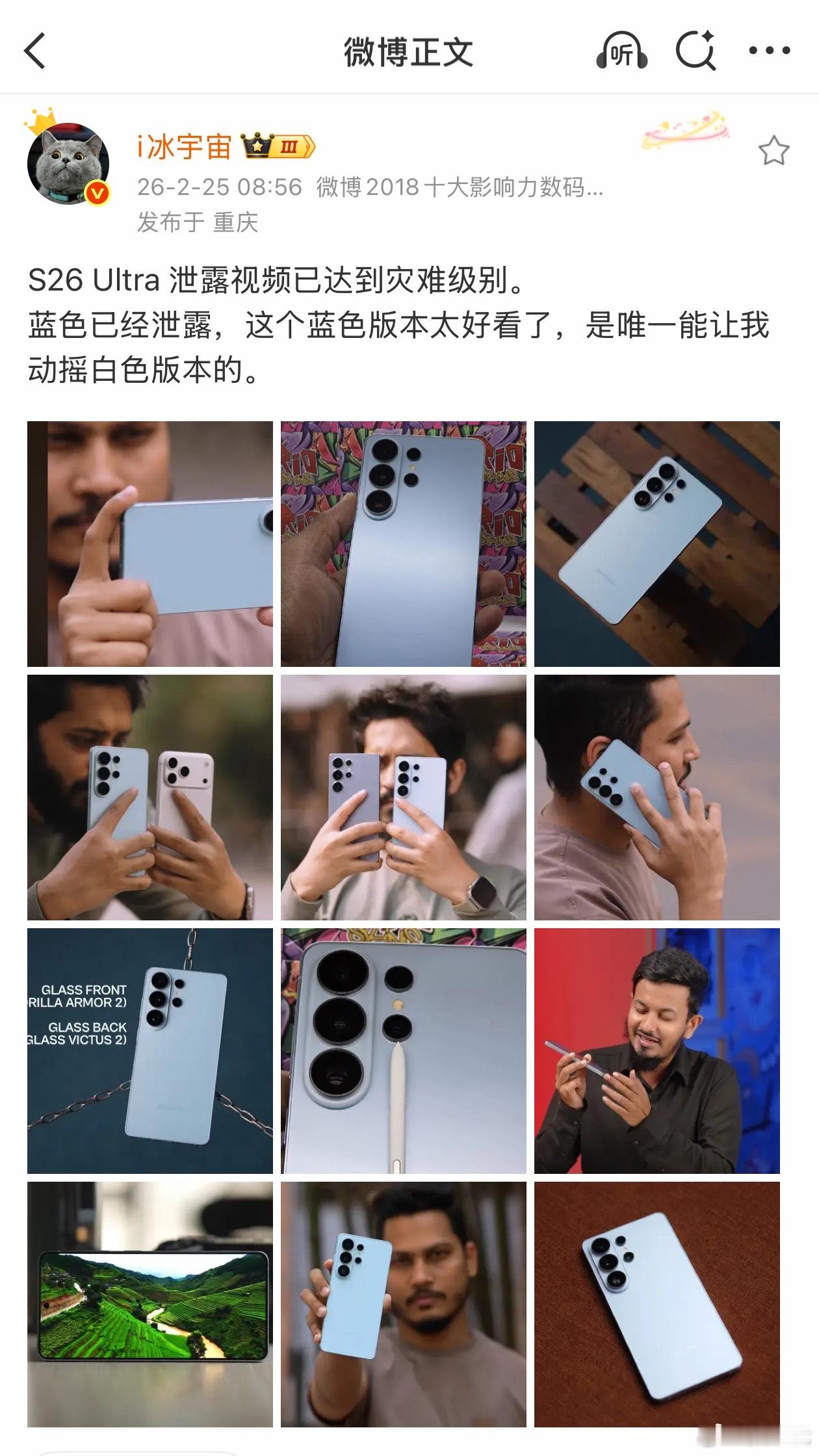 三星S26 Ultra真机外观已出,蓝色版本确实非常好看,一眼高级。每年都告诉自