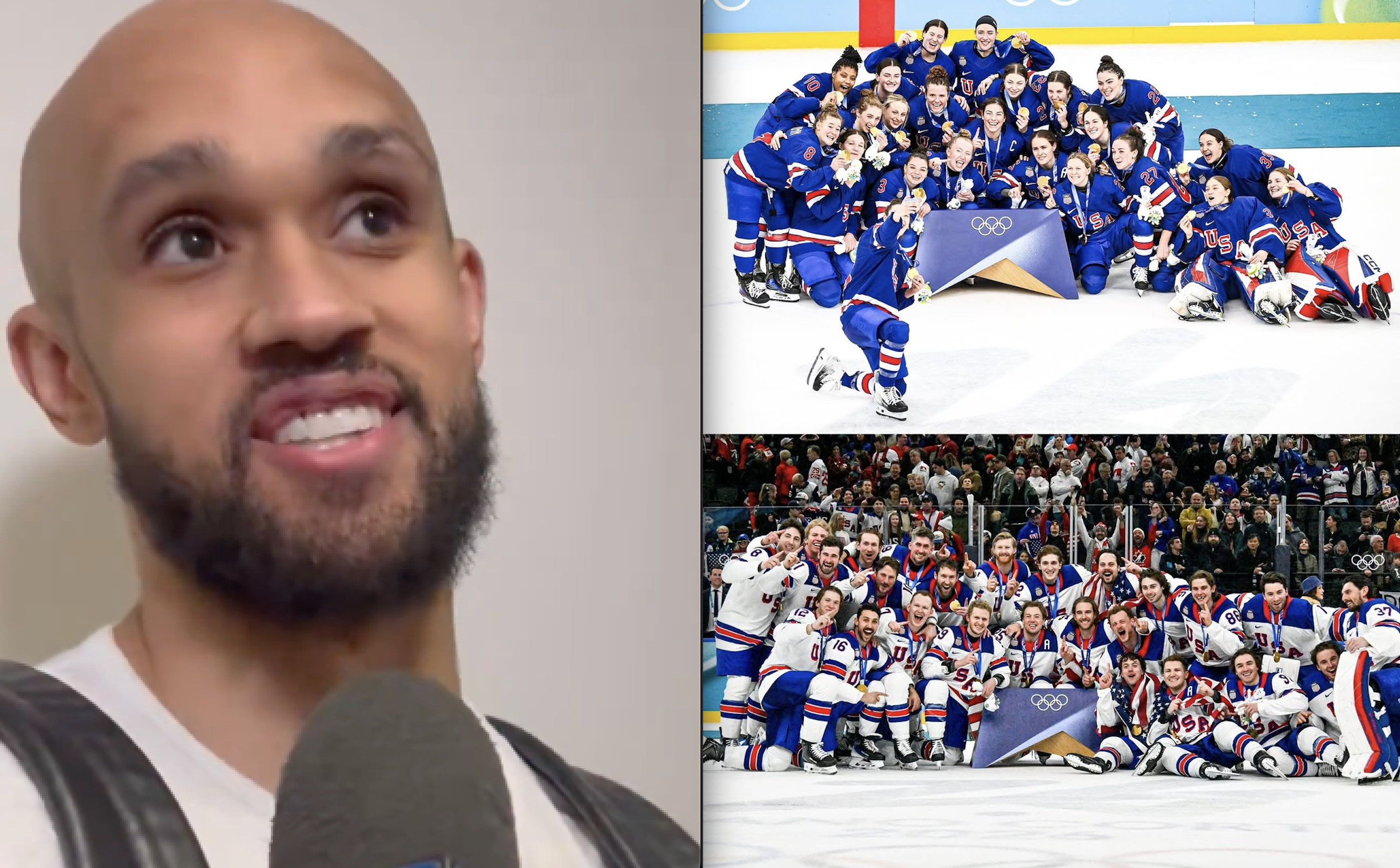 赛后,凯尔特人球员德里克-怀特接受媒体采访,谈到了最近网上热议的美国男女子冰球队皆在冬奥会上夺冠的话题。