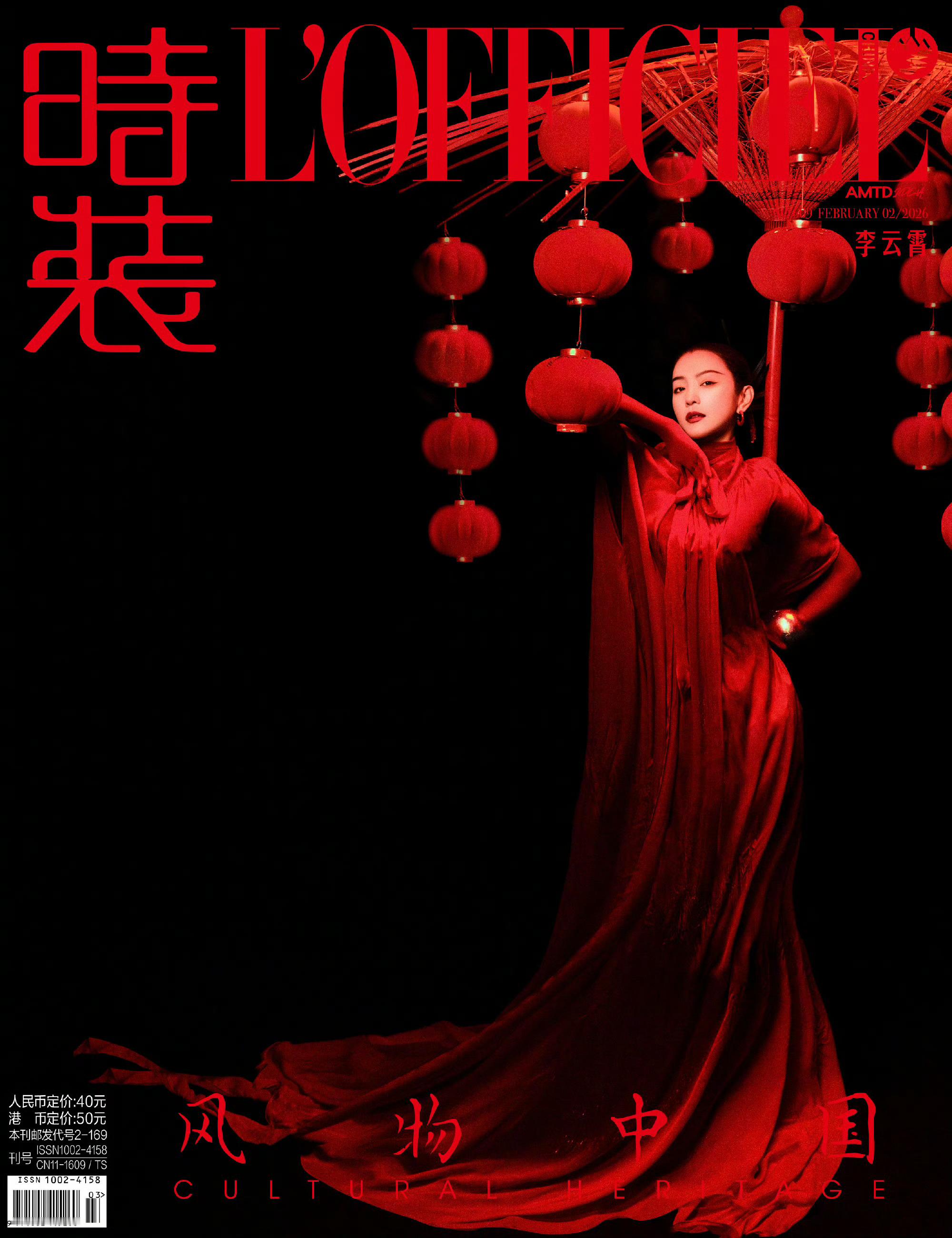 李云霄出镜时装女刊二月刊封面,第二次封面合作来到台州仙居,以花灯非遗带来两张明艳