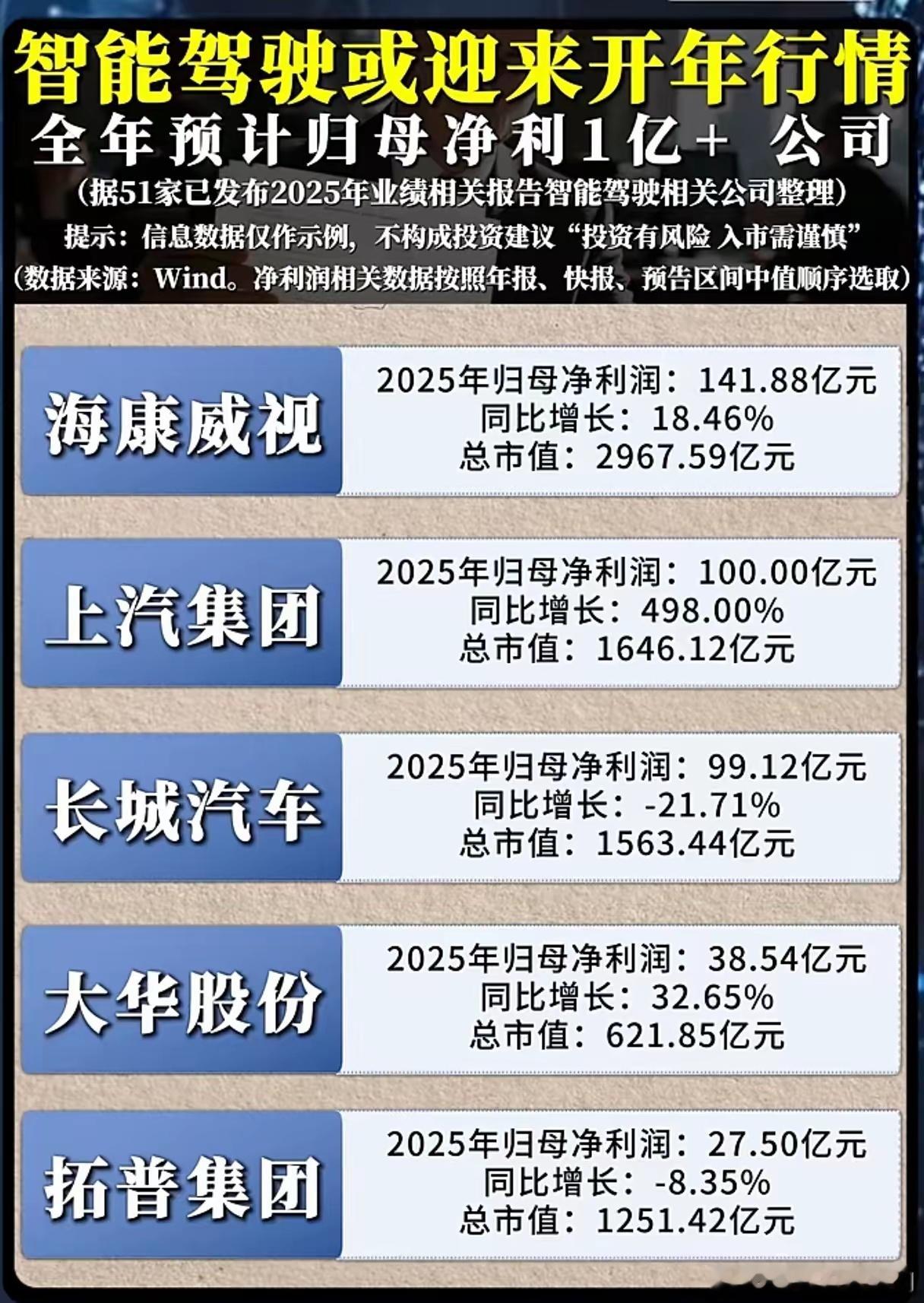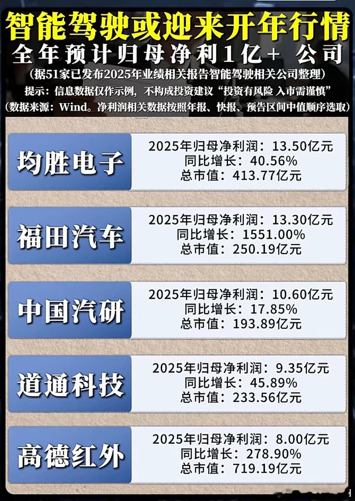 L3量产在即,智能驾驶已从讲故事进入看业绩阶段。特斯拉无人车落地、工信部力推高阶智驾,2026年成为商业化关键年。51家企业2025年业绩显示:海康威视盈利领跑,商用车视觉场景放量;福田汽车增速爆发,商用车智驾渗透率飙升;高德红外扭亏大增,红外传感成智驾刚需。行业分化明显,头部盈利、部分企业毛利承压、增速下滑,赛道冰火交织。2026年聚焦L3量产落地,端到端与模型进化成主流。行业已迈过业绩底,从主题投资转向业绩驱动。机会在域控制器、4D毫米波、线控底盘等细分小而美龙头
