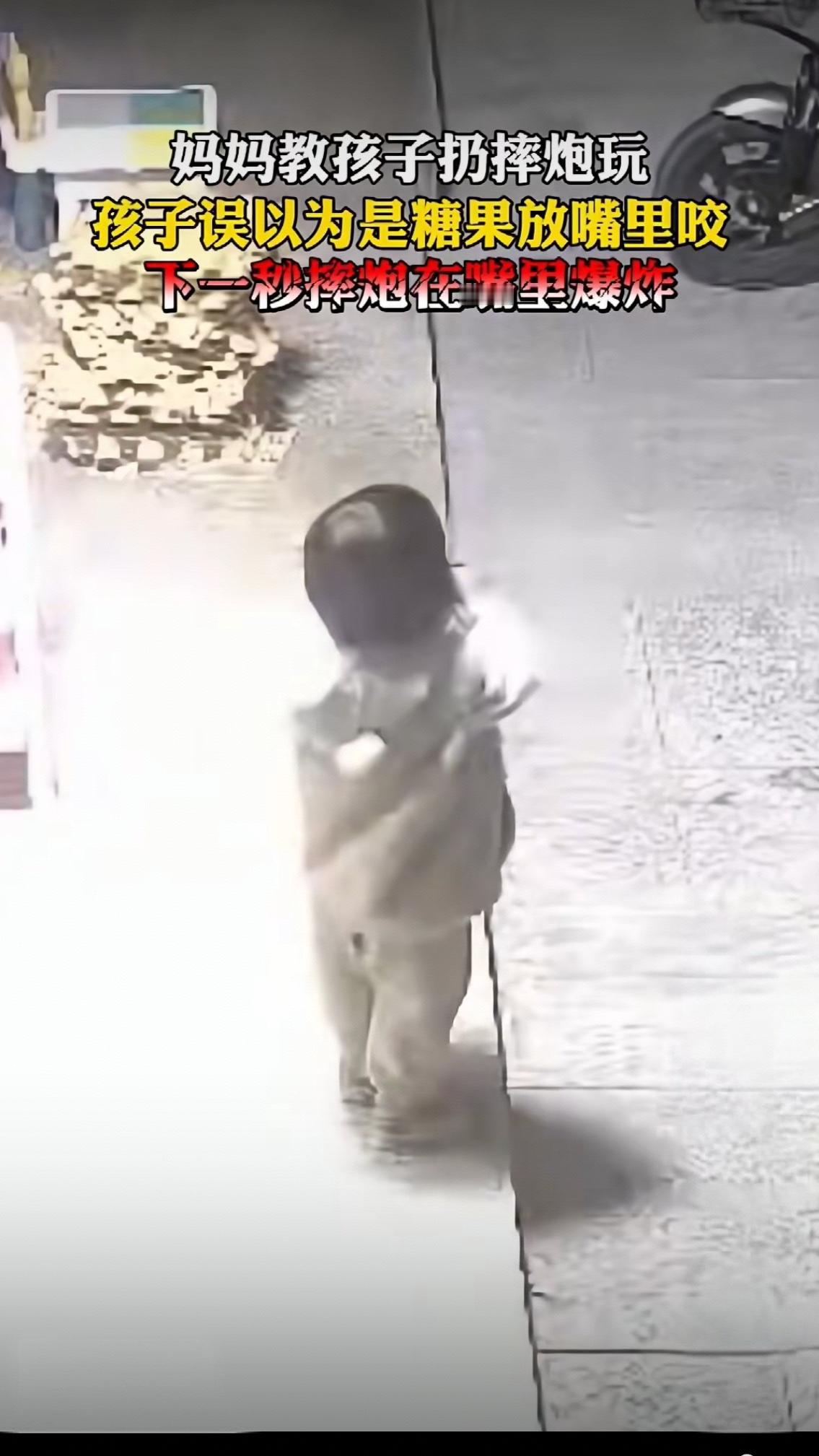 痛心!妈妈教娃玩摔炮,孩子误当糖果塞嘴咬炸,全网家长吓出冷汗! 本是过年图个热闹,却差点酿成终身遗憾,这一幕,让无数父母看完心都揪紧了。 视频里,妈妈随手拿出摔炮教孩子玩耍,清脆的响声让孩子觉得新奇又好玩,可年幼的孩子根本分不清“玩具”和“食物”,看着小小的摔炮模样,竟天真地当成糖果,一把塞进嘴里狠狠咬下去。 “砰”的一声巨响,摔炮在孩子嘴里瞬间爆炸,哭声撕裂了整个家庭的欢乐。没有人知道孩子的口腔、舌头有没有受伤,有没有留下永久的伤害,但那一声爆炸,炸醒了所有沉迷于“年味玩具”的家长。 我们总觉得,小摔炮、小擦炮没危险,随手就能玩,可在不懂事的孩子眼里,没有危险的概念,只有“能不能吃、能不能玩”的本能。多少悲剧,都源于大人一句“没事,这东西很安全”;多少伤痛,都始于家长一次漫不经心的疏忽。 孩子的世界天真无邪,可危险从来不会因为年纪小就绕道而行。过年的快乐,永远不该建立在孩子的安全之上。别等意外发生才追悔莫及,别让一时的大意,毁了孩子一生的健康。 看完这一幕,你还敢让孩子随便玩烟花爆竹吗?你家过年有没有藏着这些隐形危险?评论区说说你的看法,提醒更多家长警惕!安全隐患