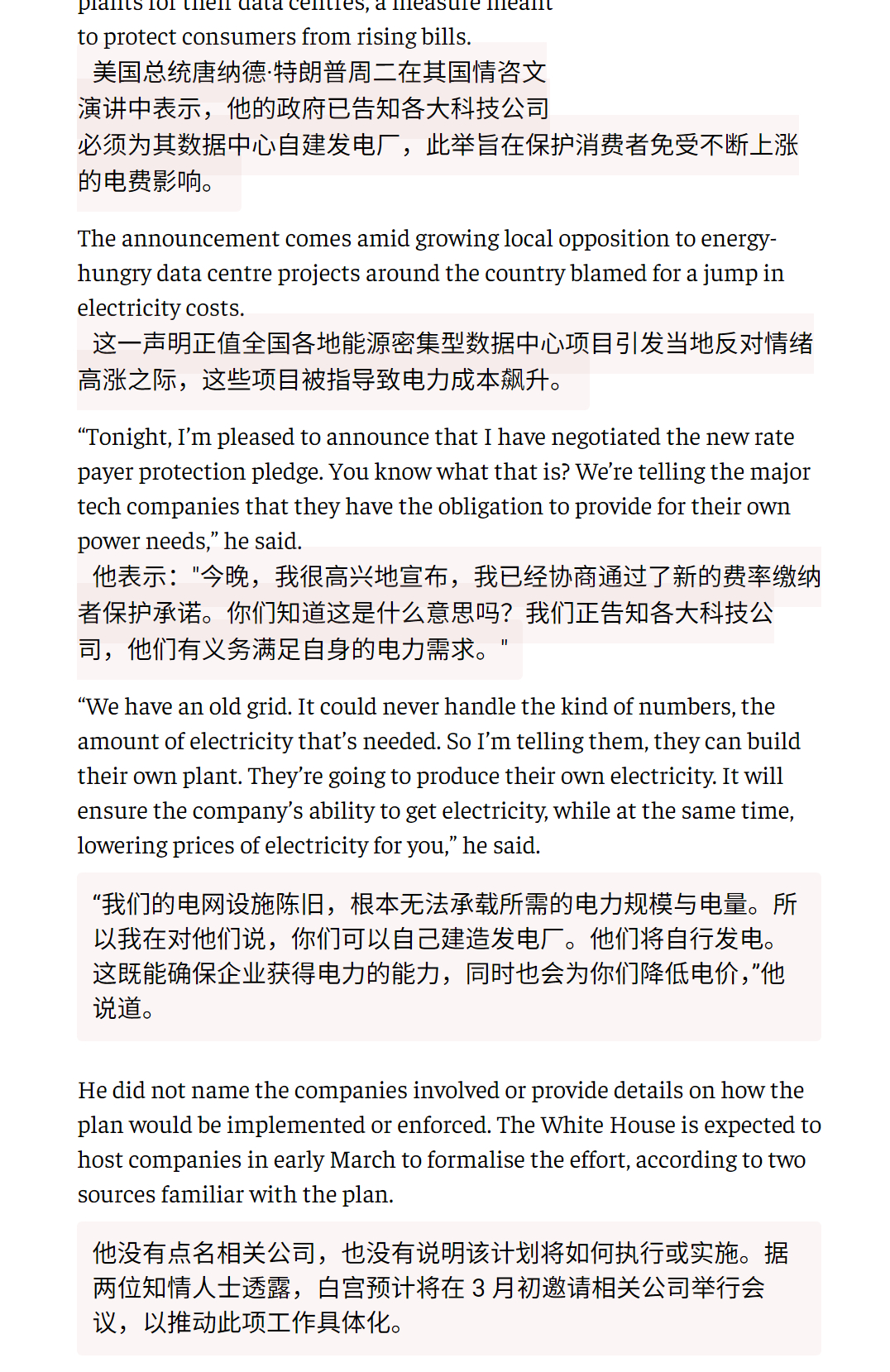🔻大家尽管笑吧……可能大家没注意到的是,美国总统特朗普在周二的国情咨文演讲中表示,他要求美国所有新建数据中心必须自行发电,脱离公共电网。🔻他没有点名相关公司,也没有说明该计划将如何执行或实施。🔻其实,全球只有一个国家能够供应这种规模的微电网和发电机组。🔻via 路透社特朗普称不知道还能活多久国际局势海外新鲜事热点现场