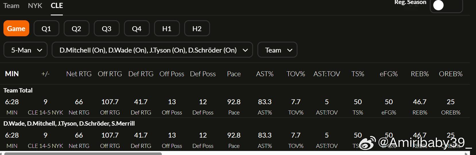 然而,骑士却在这三分半中进一步把分差扩大到了9分,让尼克斯在整整三分半钟内没有抢下任何一个进攻篮板,米罗也仅靠罚球得到一分。这其中,泰森与韦德两位“小球内线”居功至伟,在攻防两端都交出了高分答卷: