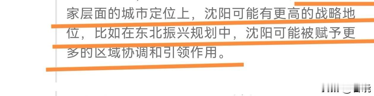 开课时间,注意听讲。 只有沈阳这种中心城市(沈阳距离最近的海只有198公里,沈阳属于陆海综合性城市)才能最大化辐射周边,效益最高,沿海只能是区域功能性城市,别犟,尤其是半岛城市,海里的鱼不用辐射,半岛城市对人口的辐射面小,这是“硬伤”,这是地缘决定的,但凡脑子正常都知道,除非你这种为了黑而黑的人。 辽宁乃至东北要整体振兴,必须是沈阳这种中心城市振兴才可以,因为沈阳都市圈人口占辽宁一多半,所以要想辽宁振兴,必然是沈阳辐射带动辽宁大多数人口振兴,而不是偏安一隅的功能性港口城市。 沈阳就是不想振兴也不行,因为国家要让辽宁振兴就是要沈阳振兴,除非国家放弃辽宁,国家在最新国家城市空间定位和过往中都多次强调沈阳是东北振兴的先行带动者,并同时被赋予协调东北其它三@楼上看大海 个副省级的功能,说白点儿,沈阳是东北的引领者、“话事人”。@楼上看大海