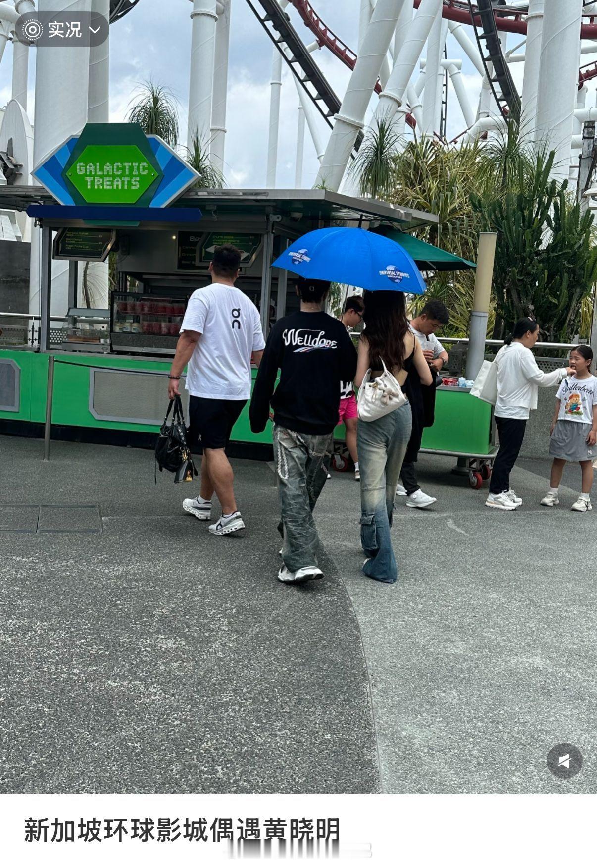 接连2个网友在新加坡环球影城偶遇黄晓明和一名年轻女子。小明好专一啊,这么多年审美始终如一