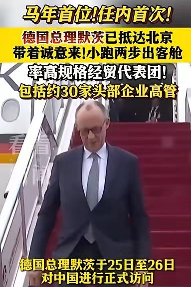 当地时间2月24日,德国总理默茨、以及大约30名企业高管,从德国乘坐专机前往北京,开启为期两天的北京、杭州两地访问行。 默茨访问时间短,就默茨临行前,在机场发表的演讲中,所涉及到的要和北京谈的事情很多,希望双方能很好的完成各项既定议题。 有媒体报道,目前默茨专机已到达北京。(个人观点,不喜勿喷,谢谢!)