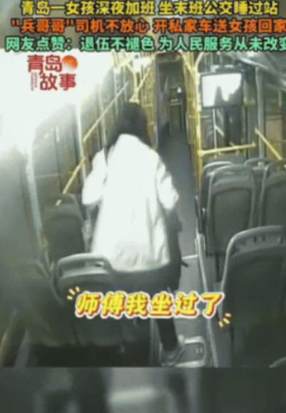 青岛,一女子上完夜班后,坐了末班公交车,没想到因为太累,在车上睡了,等公交车司机