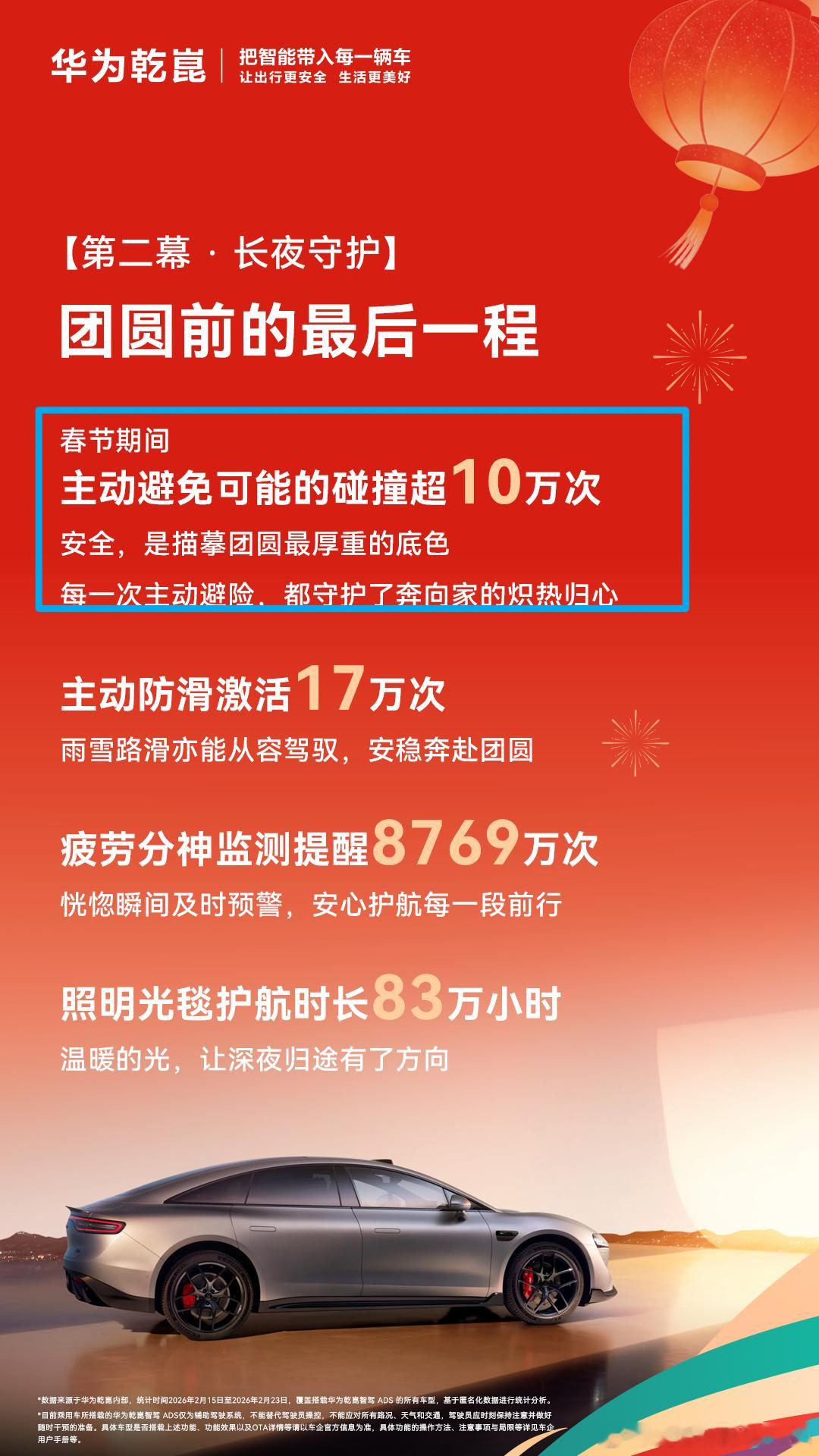这两天短视频平台出现了一些文案,说:“春节路上看到小蓝灯最好躲远点!”潜台词就是觉得辅助驾驶不好用。但实际上是只要用过辅助驾驶的用户基本上就离不开了,确实好用,而且非常有效的大大降低驾驶疲劳。春节期间(2.14-2.23)华为乾崑ADS辅助驾驶活跃用户占比91%。主动避免可能的碰撞超10万次。好的技术值得被每一个人知道。华为乾崑