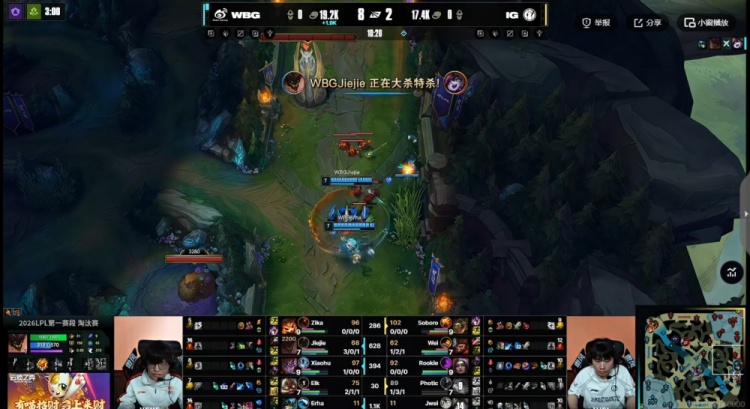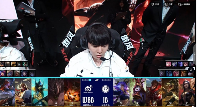 WBG:上单Zika、打野Jiejie、中单Xiaohu、下路Elk、辅助Erha