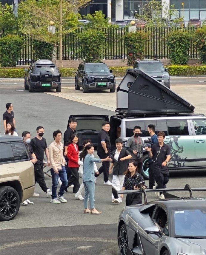王力宏今天参观了比亚迪。应该是六角大楼大厅和门口的广场,非常熟悉的地方。新能源大
