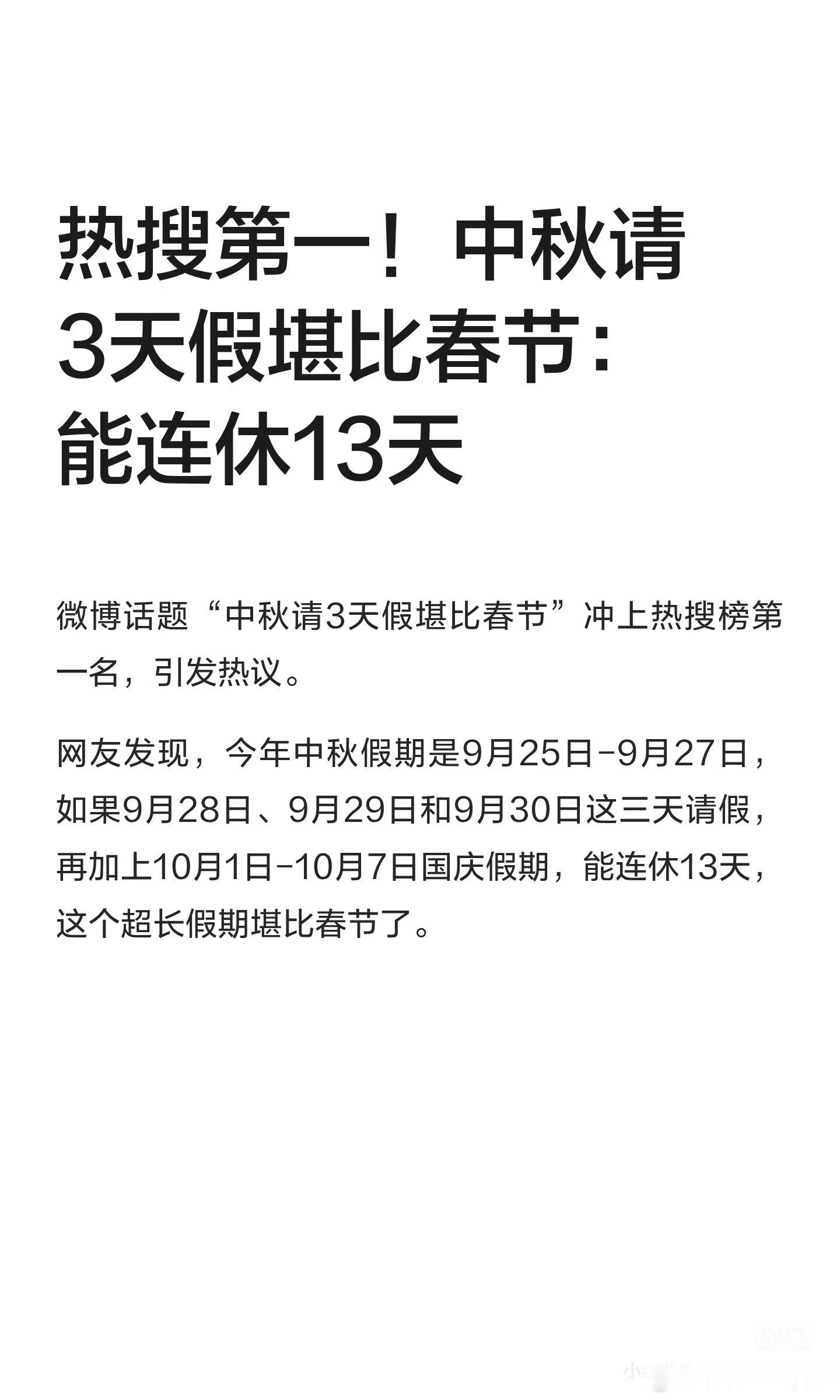 中秋请3天假堪比春节连休13天,2026中秋请假三天堪比春节!中秋请三天假,就会