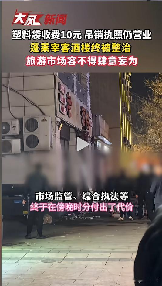 “干得漂亮!”近日,山东烟台,一家名为“老蓬莱酒楼”的饭店,招牌被强拆了。周围人知道后不仅没有同情,反而拍手叫好。原来,这家店早已臭名昭著,曾因宰客被多次举报,后来营业执照被吊销,它居然还敢私自营业!网友:这下老实了吧! 一个好的旅游口碑,需要多方面持续的努力才能够树立,可毁掉它却很简单,有时候一家宰客的店就够了。 据媒体2月24日报道,事情还得从2024年说起,当时,这家店曾因一个打包塑料袋收费十元引发全网热议。到了2025年十一黄金周,问题进一步增大。 当时有游客在店内就餐,发现该店存在以次充好、饮料过期、强行改价宰客等问题。甚至营业执照、食品经营登记许可证上的单位都不是一家,于是向当地监管部门进行了举报。 今年一月份,当地市场监督管理部门依法吊销了该店的营业执照。可令人意外的事,该店依旧我行我素,无视处罚,继续经营。 监管部门发现后,当即给该店贴上了封条。没想到,不到一天,封条就被撕毁,该店居然又开门营业了。这一下,彻底触碰了监管底线。 事发当晚,当日市场监管部门联合综合执法等部门,强行拆除了该店的招牌,一并将店内的经营设施全部拆掉了。至此,这家嚣张的宰客酒楼终于彻底停业了。 网友看后表示,真是大快人心啊,这样的店留着就是个祸害,既损害了就餐者的合法权益,还抹黑了当地的旅游形象,早就该取缔了!这下子游客们可以放心游玩就餐了! 信息来源:《塑料袋收费10元,吊销执照仍营业,蓬莱宰客酒楼终被整治 ,旅游市场容不得肆意妄为。