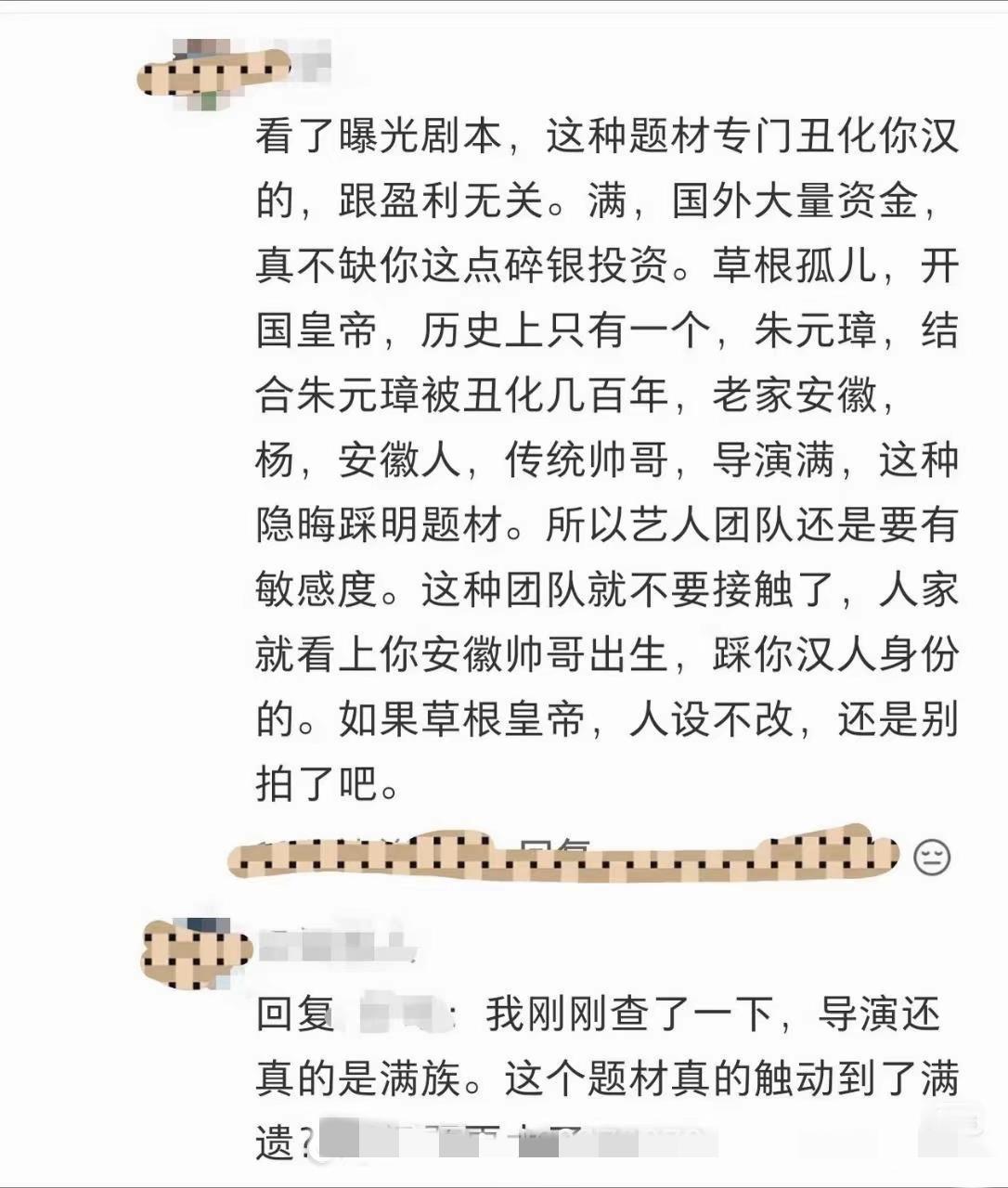 这很可能就是真相, 《不让江山》男主原型就是草根皇帝朱元璋, 结果满族导演把剧本魔改, 让男主角成了满口屎尿屁脏话的小流氓, 让对标马皇后的女主角暗恋男二, 还让男二和男三之间关系暧昧。 这部剧要是拍出来,再恶意引导一下, 甚至有些人都会对朱元璋印象改变, 就算抹黑不了老朱,杨洋也会挨骂,实现了它们的掐尖计划。 杨洋还是快跑吧。